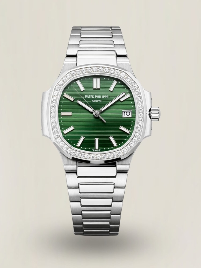 Patek Philippe Nautilus 5711/1300A-001 Super Clone Olivgrünes Zifferblatt Diamantlünette Replica 35,2 mm