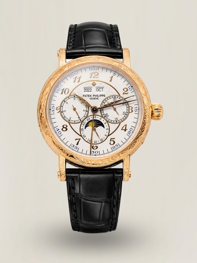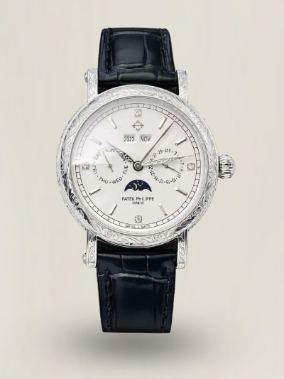 Patek Philippe Grand Complications 5160/500R Ewiger Kalender Replica-Uhr – Handgraviertes Gehäuse aus Roségold