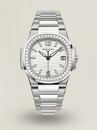 Patek Philippe Nautilus 7118/1200A-010 Diamantlünette Silbernes Zifferblatt 35,2 mm Damen Replica Uhr