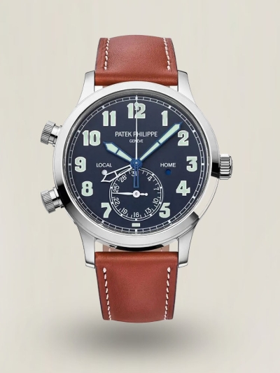 Patek Philippe Calatrava Pilot Travel Time 5524G-001 Replikat Uhr Blaues Zifferblatt 42mm Dualzeit