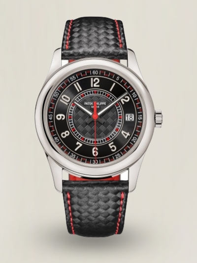 Schweizer Patek Philippe Calatrava 6007G-010 Replica Uhr mit Gehäuse aus Edelstahl, roten Akzenten und schwarzem Lederarmband