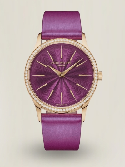 Replica Patek Philippe Calatrava 4997/200R - Schweizer AAA Roségold Damenarmbanduhr mit lila Zifferblatt