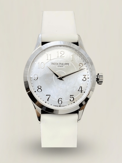 Beste Schweizer Super Clone Patek Philippe Calatrava 4968G-108 Replica 33MM mit weißem Lederarmband