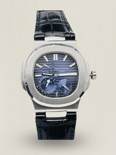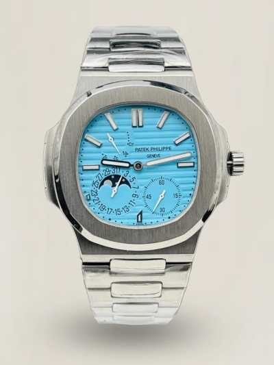 Schweizer Patek Philippe Nautilus 5712/1A-001 Replica-Uhr – Blau-Graues Zifferblatt, Mondphase, 40 mm Herren-Luxuszeitmesser