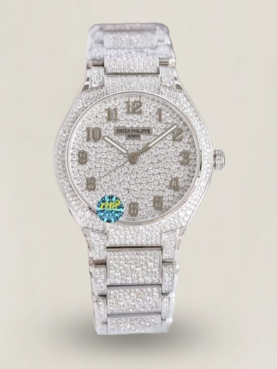 Patek Philippe Twenty~4 7300 Super Clone 36MM Replica-Uhr - Voller Diamant-Schneeflockenbesatz