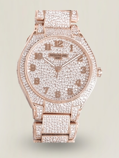 Beste Patek Philippe Twenty~4 7300/1450R-001 Replica-Uhr mit vollem Diamant-Gehäuse aus Roségold, Schweizer Uhrwerk