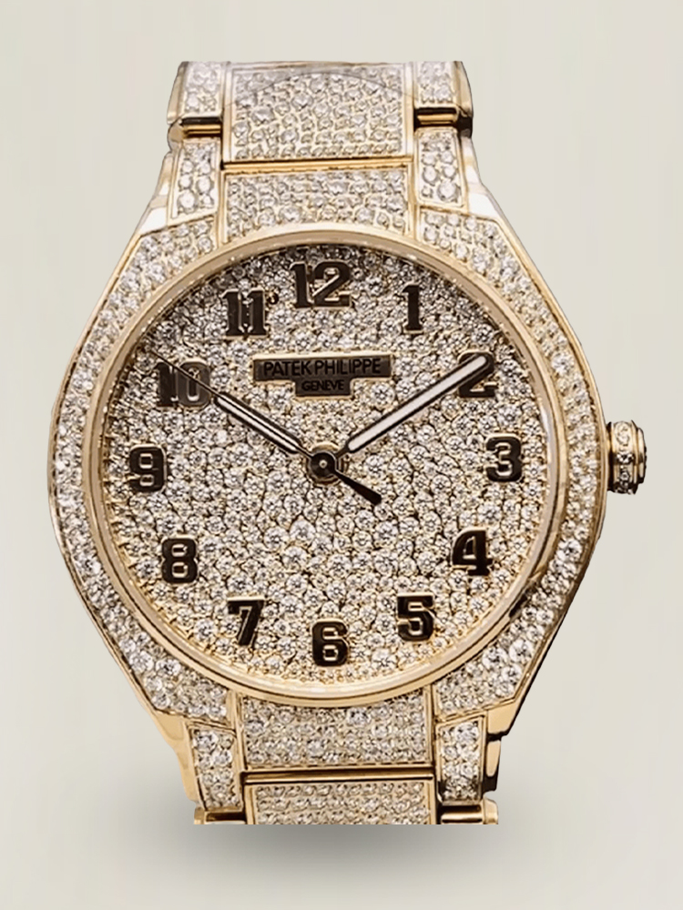 Beste Patek Philippe Twenty~4 7300/1450R-001 Replica-Uhr mit vollem Diamant-Gehäuse aus Roségold, Schweizer Uhrwerk