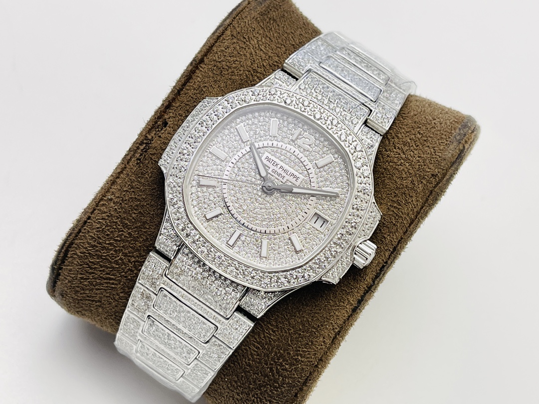 Beste Schweizer Replica Patek Philippe Nautilus 7021 Damen Luxus-Uhr mit Diamantlünette und Edelstahlarmband