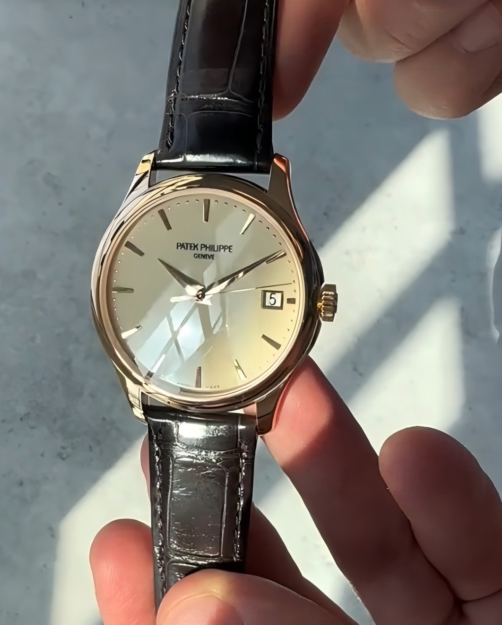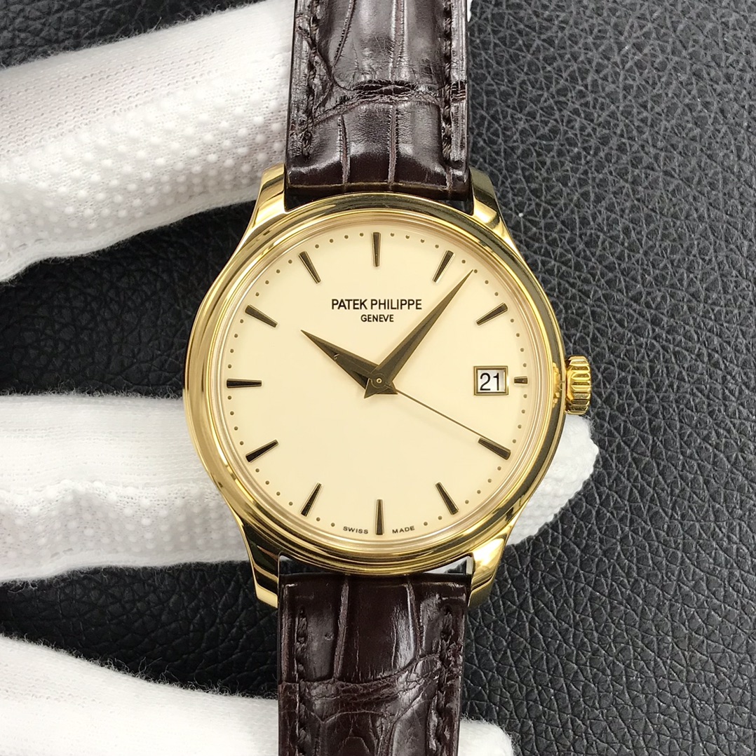 Elegante Patek Philippe Calatrava 5227J Replica – Schweizer Uhrwerk, Goldgehäuse, Zifferblatt aus Gold, Luxusuhr für Herren
