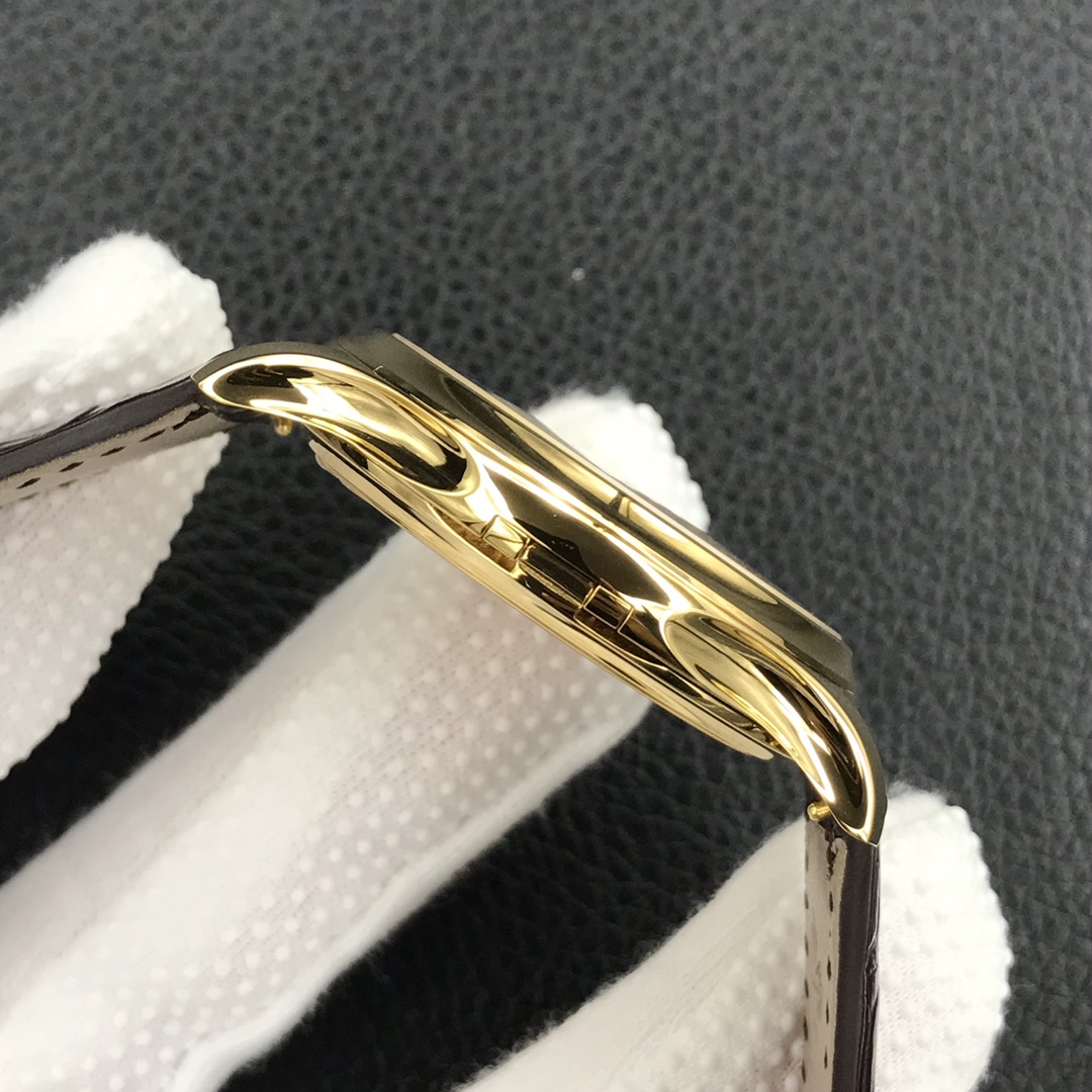Enthüllen Sie elegante Klasse mit der Patek Philippe Calatrava 5227J Replica-Uhr. Sie strahlt zeitlosen Luxus aus. Es handelt sich um eine atemberaubende Uhr mit einem 39 mm großen Gehäuse aus goldfarbenem Edelstahl und einer angenehmen, würdevollen Politur. Zifferblatt in Gold mit eleganten, vergoldeten Indizes, bietet ein schlankes und stilvolles Erscheinungsbild.