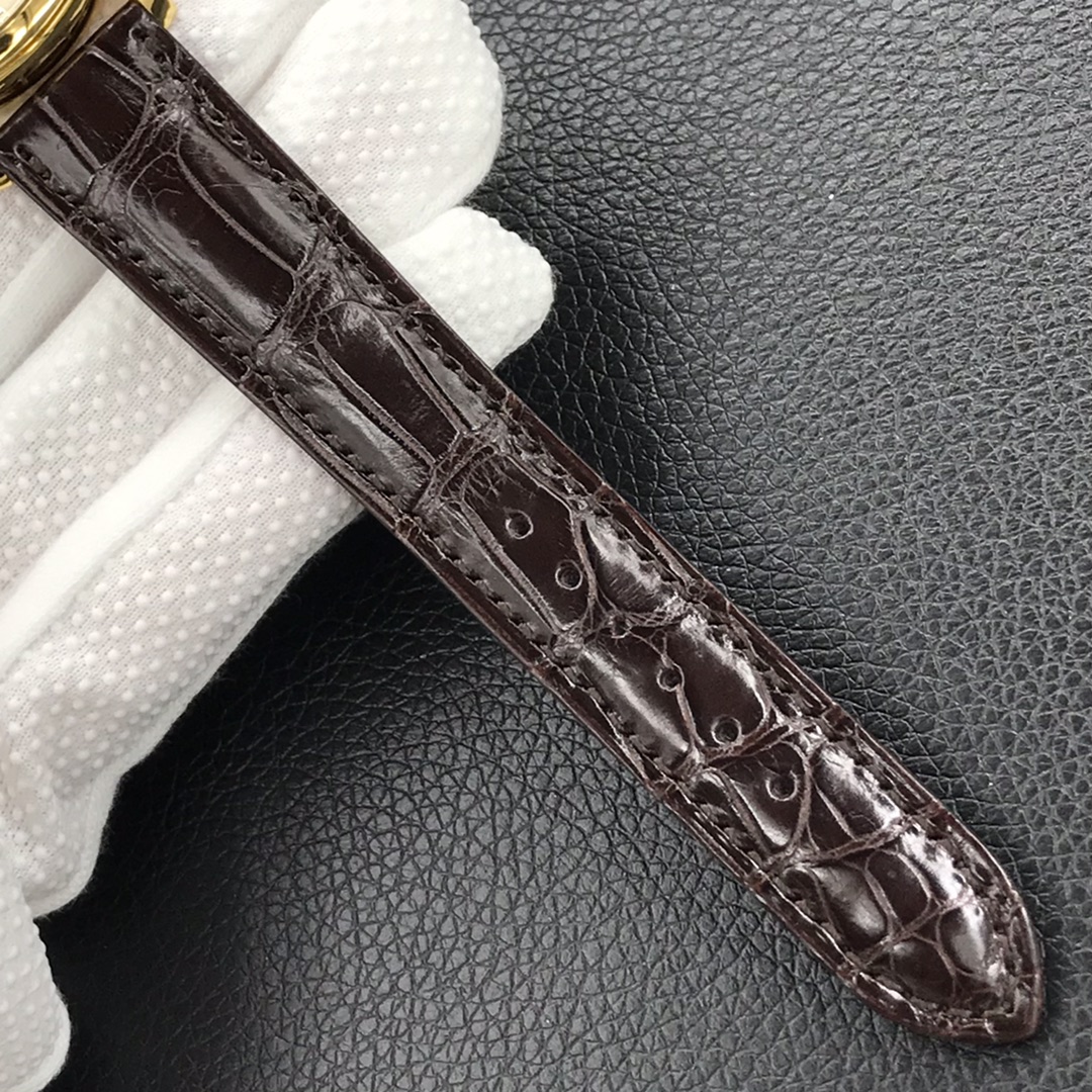Hinter dem Saphirglas tickt ein zuverlässiges Schweizer Uhrwerk und lebt mit jedem einzelnen Sekundenzeiger weiter. Das braune Lederarmband vervollständigt den retro-inspirierten Look der Raffinesse und harmoniert hervorragend mit dem Gesamtdesign. Mit einer Wasserdichtigkeit von bis zu 30 Metern ist diese hochwertige Patek Philippe Calatrava 5227J Replica perfekt für den täglichen Gebrauch sowie für gehobene Anlässe und formelle Veranstaltungen.