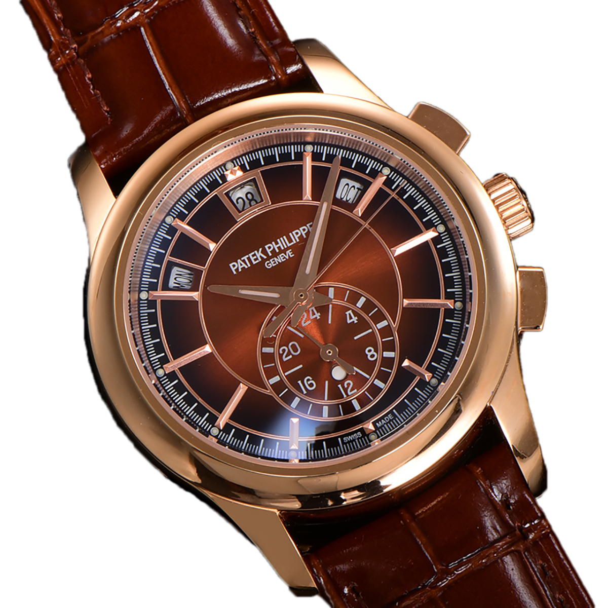 Treffen Sie die Replica Patek Philippe Grand Complications 5905R-001 — wo scharfer Stil auf ernsthafte Handwerkskunst trifft. Dieser 42MM Hingucker besticht durch ein tiefbraunes Zifferblatt mit goldenen Stundenmarkierungen und einer klaren Anzeige für Tag, Datum und Monat, die einfach perfekt aussieht.