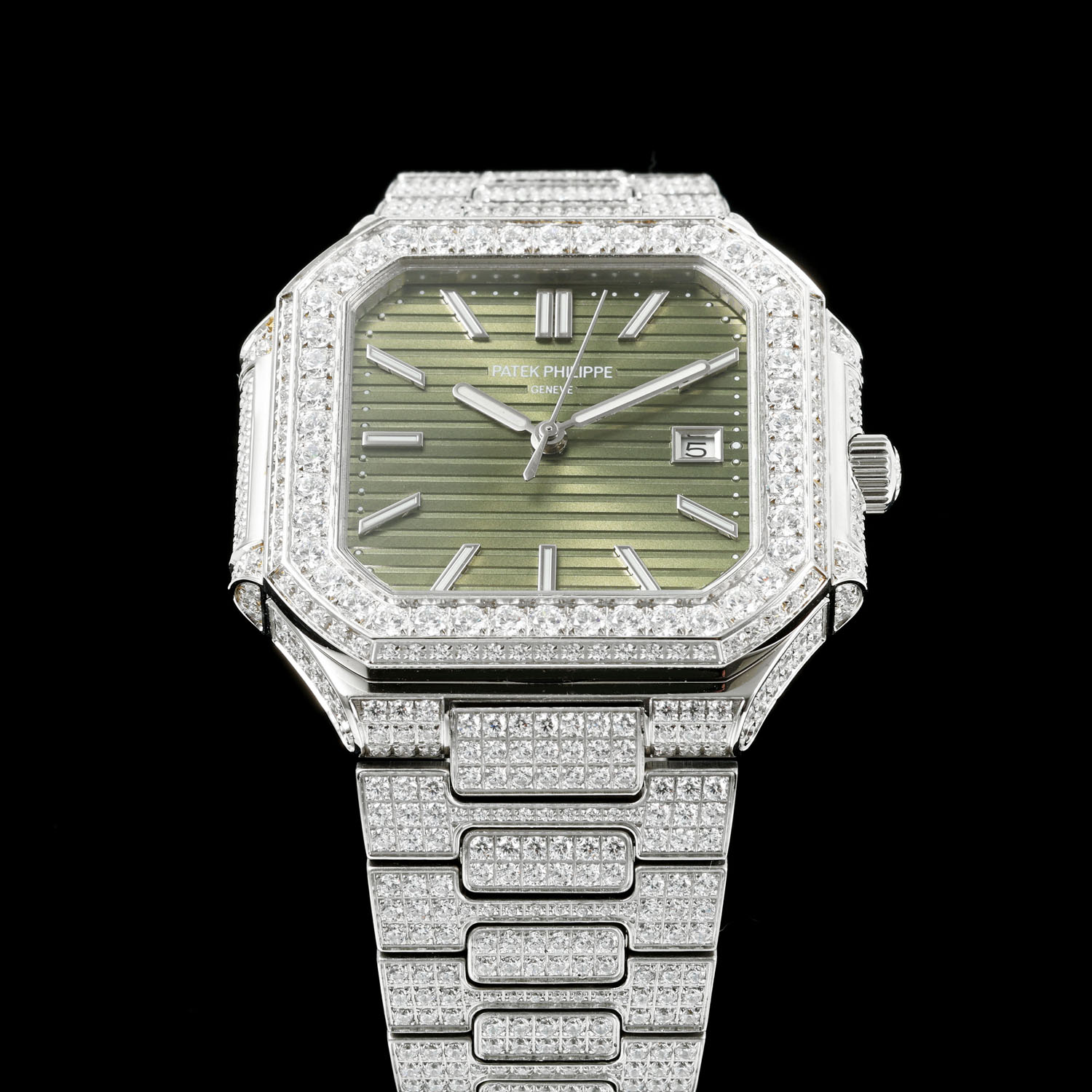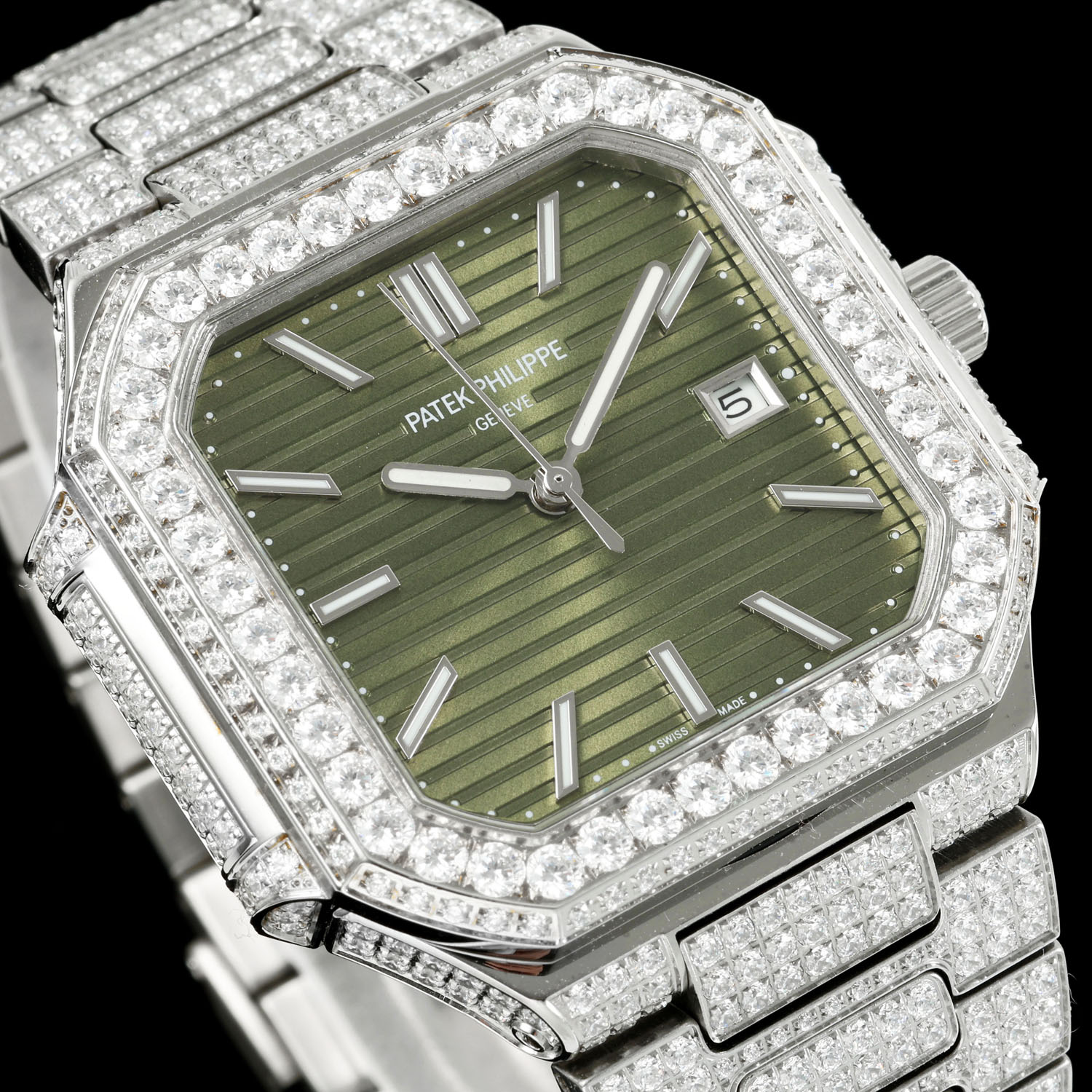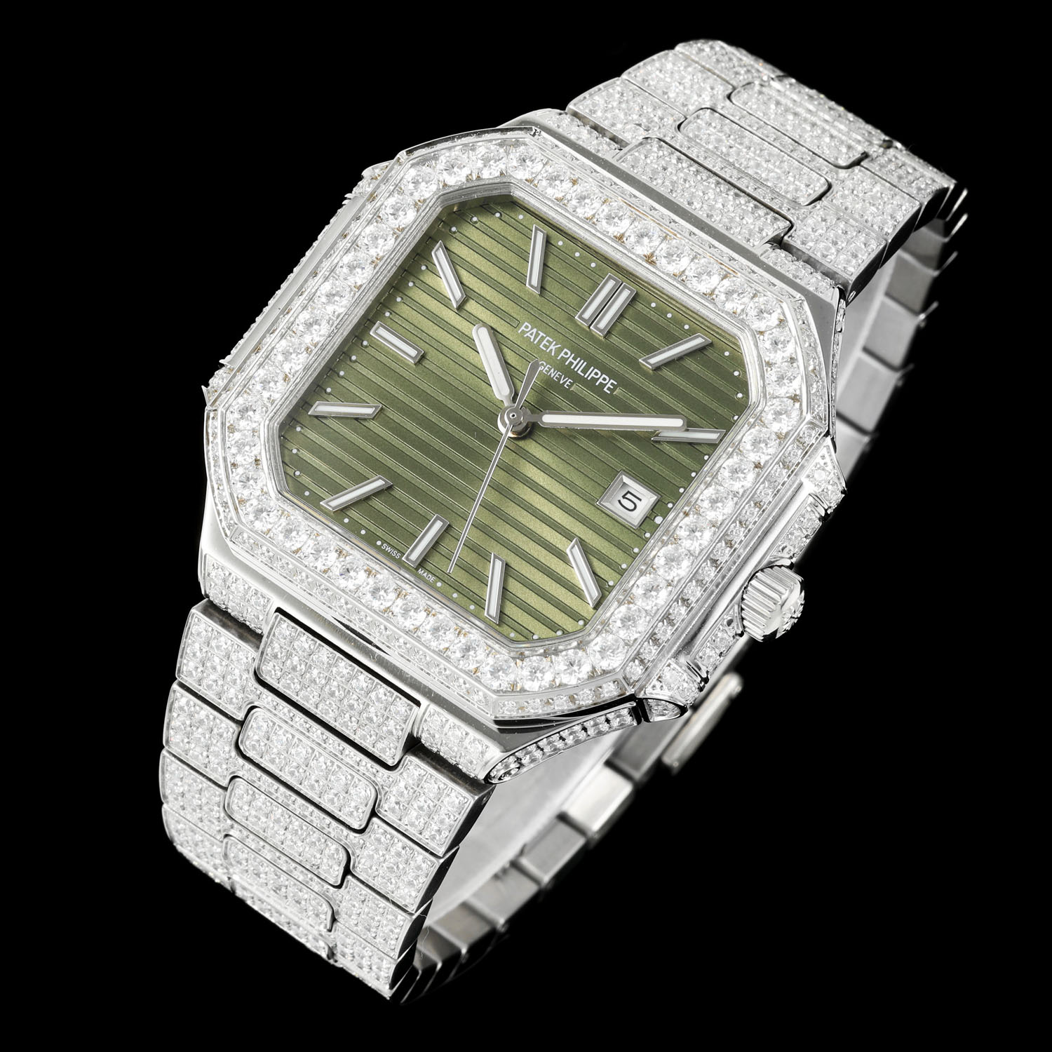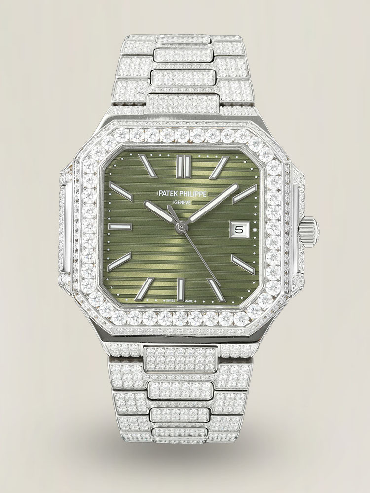 Die Patek Philippe CUBITUS 5821/1A-001 Replica-Uhr ist der Inbegriff von Eleganz und feiner Handwerkskunst. Sie verfügt über ein 45 mm großes Gehäuse aus Edelstahl, das in einer modernen, aber zeitlosen quadratischen Form mit abgerundeten Kanten gestaltet ist. Ihr raffiniertes Erscheinungsbild wird durch das olivgrüne Zifferblatt mit horizontaler Prägung weiter unterstrichen. Zudem wird sie durch ein maßgeschneidertes Armband aus 316L-Edelstahl und eine patentierte Faltschließe ergänzt, die höchsten Komfort und Sicherheit verspricht. In dieser Hinsicht beherbergt sie ein Schweizer Uhrwerk unter dem kratzfesten Saphirglas, das Langlebigkeit und Präzision vereint. Mit einer Wasserdichtigkeit von bis zu 50 Metern ist diese AAA-Qualitäts-Replik ideal für den täglichen Gebrauch und erweist sich als Inbegriff von Raffinesse und Zuverlässigkeit.