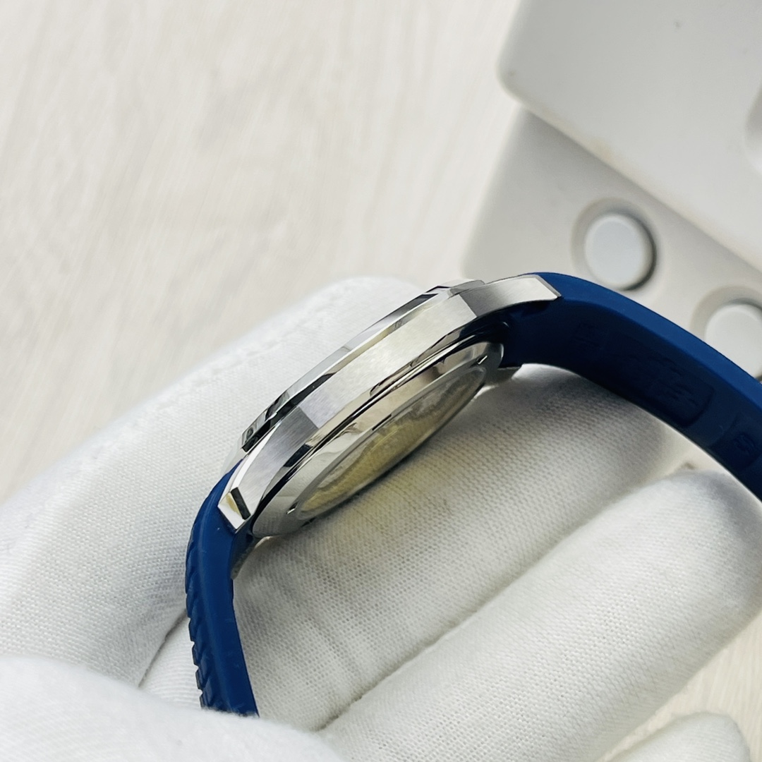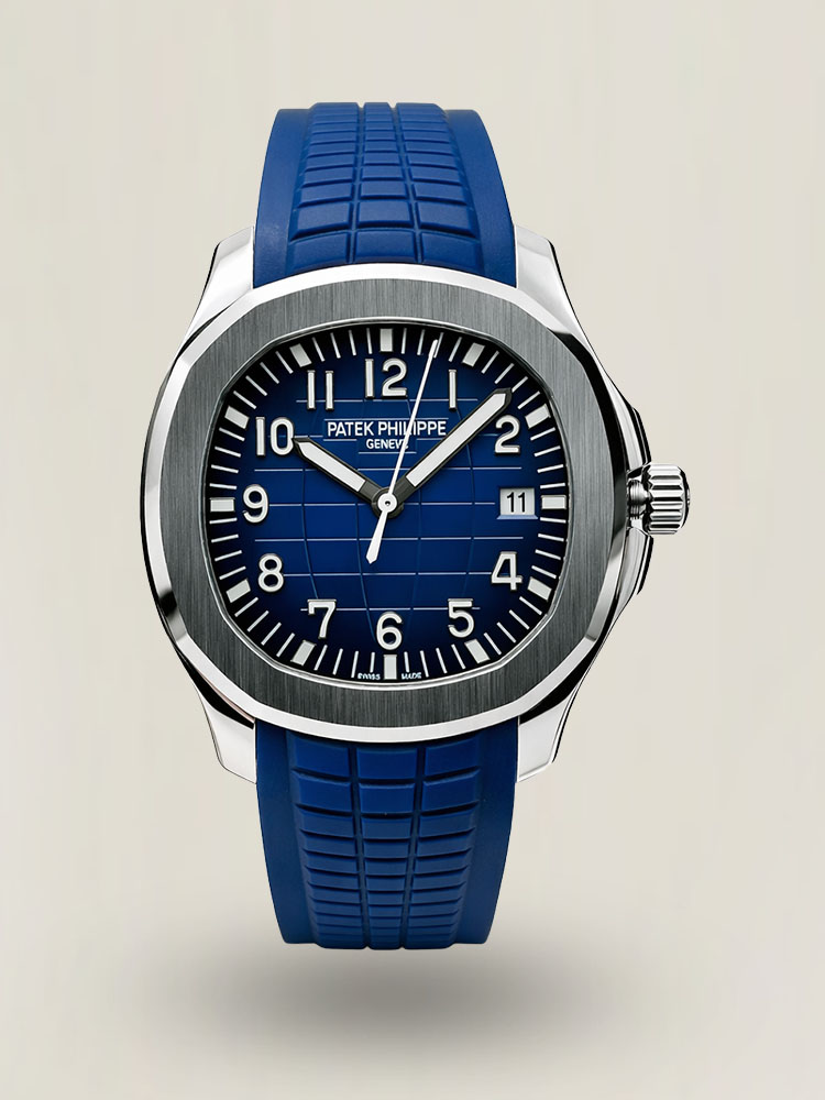 Die Patek Philippe Aquanaut 5168G-001 verkörpert eine perfekte Mischung aus Luxus und sportlicher Eleganz, entworfen für die Bedürfnisse moderner Uhrenliebhaber, die Leistung und Schönheit gleichermaßen schätzen. Die Patek Philippe Aquanaut 5168G-001 verfügt über ein 40 mm Gehäuse aus hochwertigem 904L-Edelstahl. Die Uhr besticht durch außergewöhnliche Festigkeit und eine hochglänzende Oberfläche. Das Zifferblatt zeigt einen wunderschönen Farbverlauf von Blau mit dem ikonischen, geprägten Muster der Aquanaut-Kollektion. Das Zifferblatt wechselt sanft von einem hellen Ozeanblau in der Mitte zu einem tiefen Schwarz an den Rändern. Die Uhr ist mit einem blauen „Tropical“-Kompositarmband ausgestattet, das Komfort bietet und abriebfest ist.