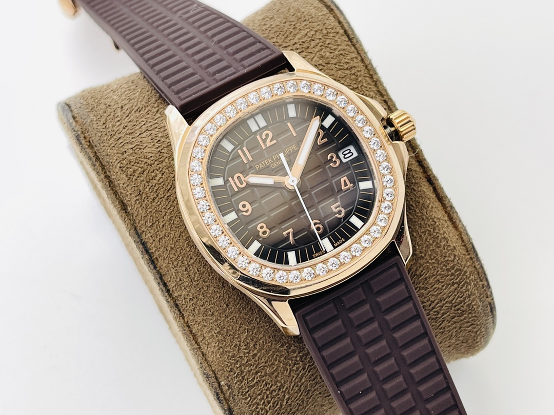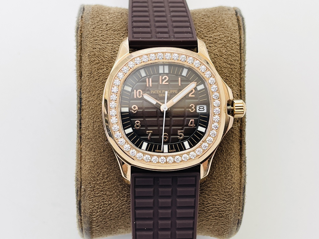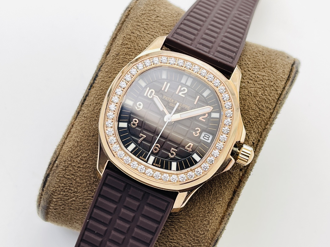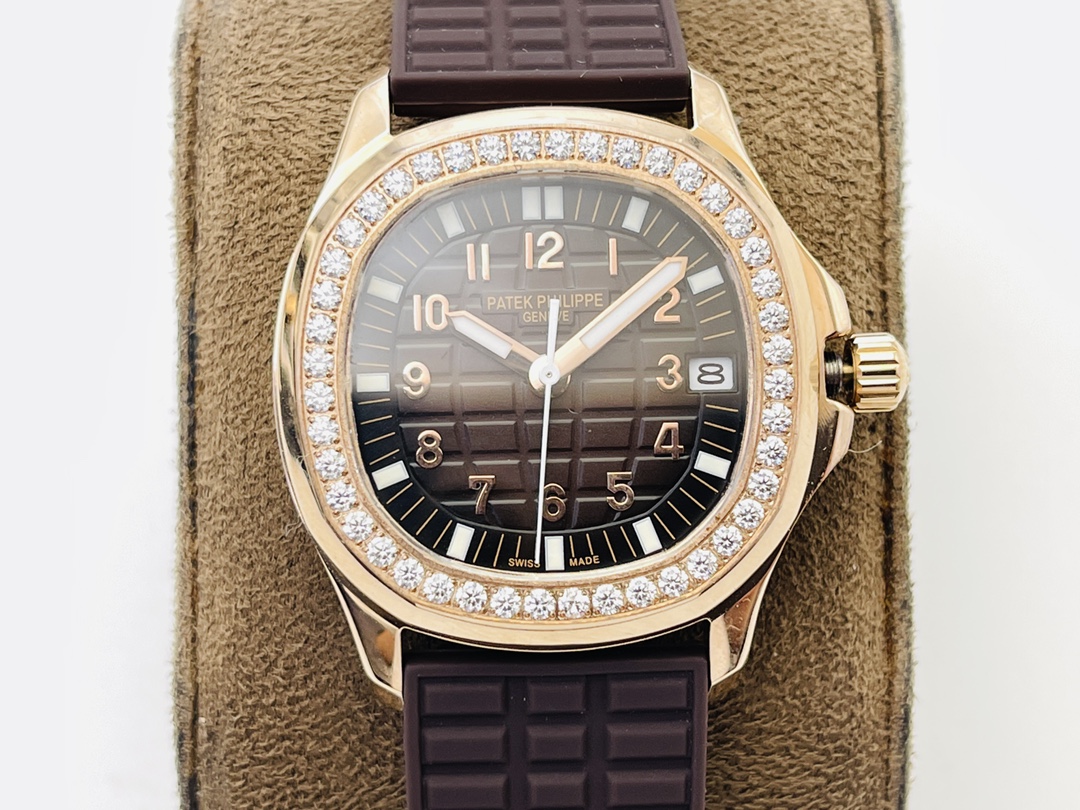 Patek Philippe Aquanaut Luce 5068R-001 Damen Uhr Replica Schweizer Bewegung Roségold Braunes Zifferblatt Diamantlünette 35,6 mm