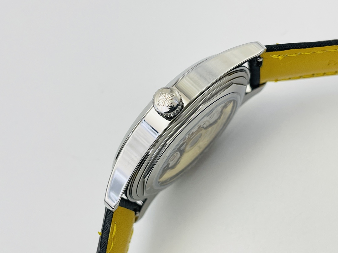 Bringen Sie das Beste der modernen Uhrmacherkunst mit unserer Patek Philippe Calatrava 6007G-001 Super Clone Replica Uhr. Unsere Uhr ist eine Nachbildung der berühmten Patek Philippe Calatrava Uhr in 40 mm aus Weißgold, jedoch aus hochwertigem 316L Edelstahl gefertigt. Die Uhr hat eine handveredelte Oberfläche, die Ihnen das luxuriöse Gefühl und Aussehen verleiht, das Sie sich von einer Uhr wünschen. Zudem verfügt die Uhr über ein leicht gewölbtes Saphirglas, das kristallklare Klarheit mit einer besonderen Verzerrung bietet, die garantiert Blicke auf sich zieht. Die Uhr ist zudem bis zu einer Tiefe von 50 Metern wasserdicht, sodass Sie sie jeden Tag tragen können.