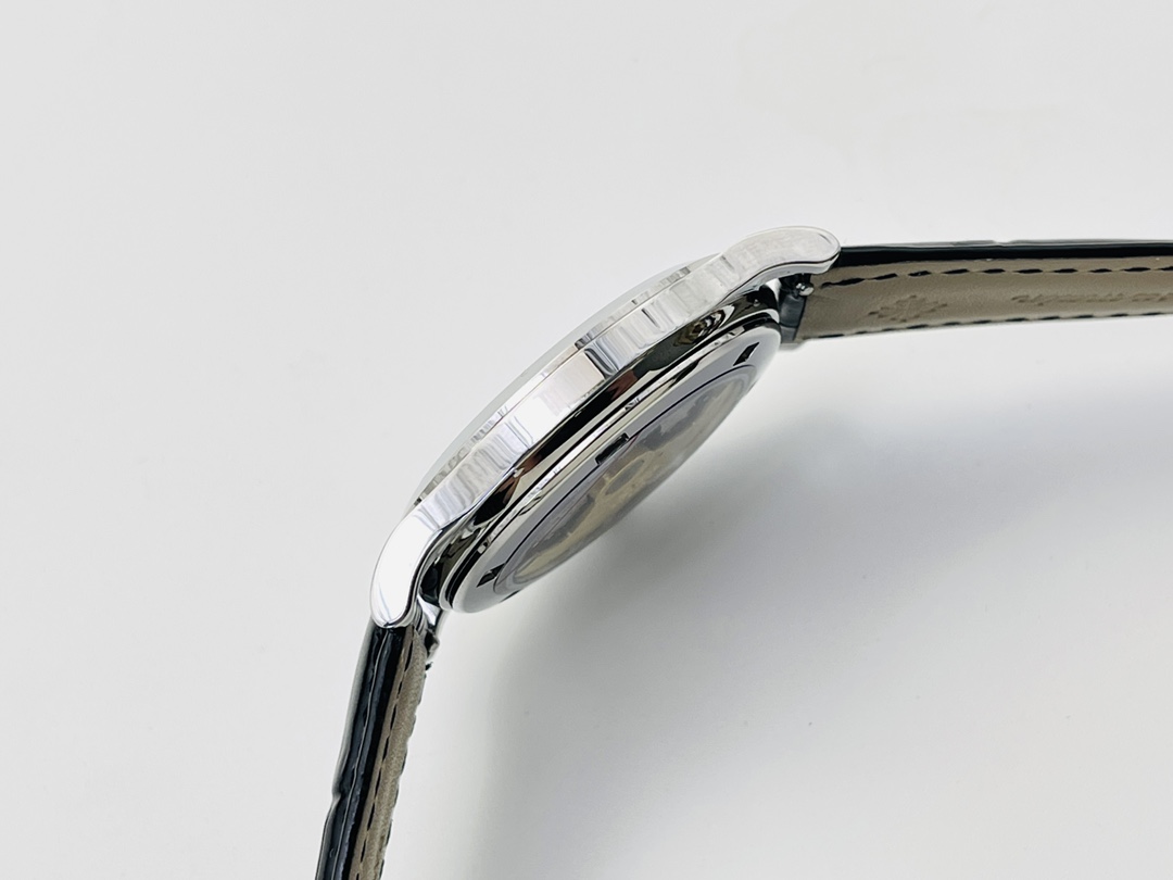 Die Uhr hat ein 38 mm poliertes Gehäuse aus 904L Edelstahl mit einem automatischen Schweizer Uhrwerk und einem kristallklaren Saphirglas für den makellosen Abschluss. Sie wird mit einem italienischen Kalblederarmband geliefert, das für einen luxuriösen Sitz sorgt. Zudem ist die Uhr bis zu 50 Meter wasserdicht, was sie zu einer praktischen und langlebigen Uhr macht.