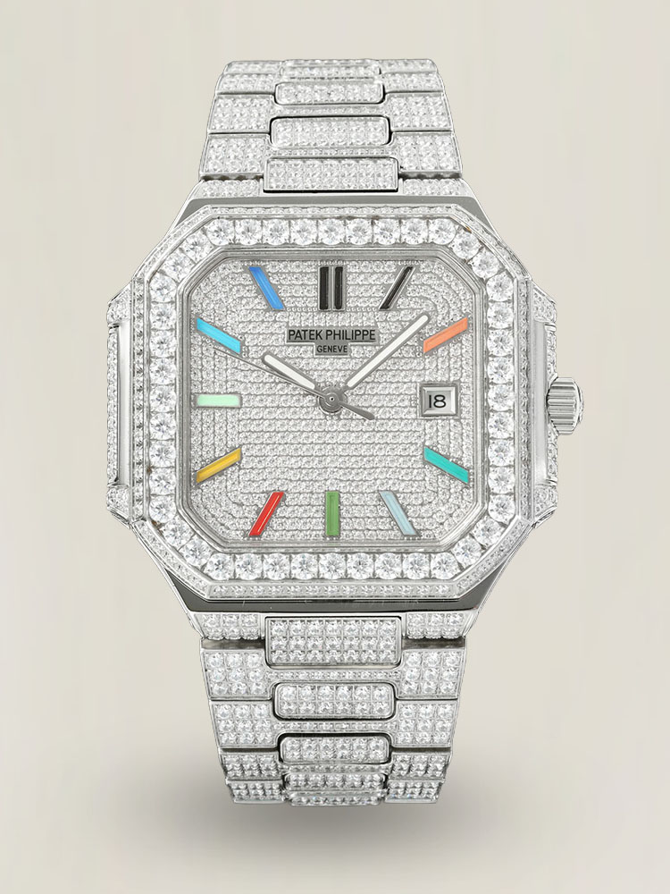 Präsentation der Patek Philippe Cubitus 5821/1A-001 Replica—ein Maßstab für Eleganz und Klasse. Ein 45 mm großes quadratisches Gehäuse mit abgerundeten Kanten verleiht dem Handgelenk ein schlankes, elegantes Profil. Das auffälligste Merkmal dieser Uhr ist das mit Diamanten besetzte Zifferblatt mit mehrfarbigen arabischen Ziffern. Hergestellt aus einem Edelstahlgehäuse mit einem ergonomischen 316L Edelstahlarmband, beherbergt sie auch die patentierte Faltschließe von Patek Philippe mit einem Verriegelungsmechanismus, der sicherstellt, dass der Träger sowohl einen guten Halt als auch Komfort beim Tragen hat. Angetrieben von einem Schweizer Uhrwerk, ist diese Uhr bis zu einer Tiefe von 50 Metern wasserdicht und bietet zudem ein kratzfestes Saphirglas. Fügen Sie diese Replica Ihrer Uhrenkollektion hinzu.