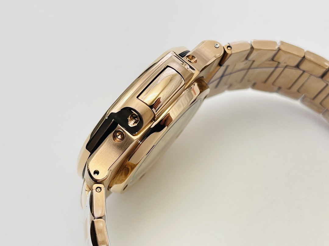 Der Look wird durch ein luxuriöses, roségoldbeschichtetes Stahlarmband vervollständigt, das diesem Stück ein Maß an Komfort und Luxus verleiht, das unvergleichlich ist. Dieses Stück hat eine Wasserdichtigkeitsbewertung von 50 m und ist mit einem Saphirglas ausgestattet. Dies ist Ihre goldene Gelegenheit, das Nonplusultra der Nautilus-Luxusuhren in Form eines Super Clones zu ergattern!
