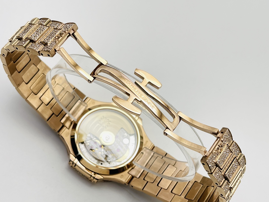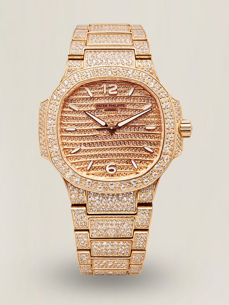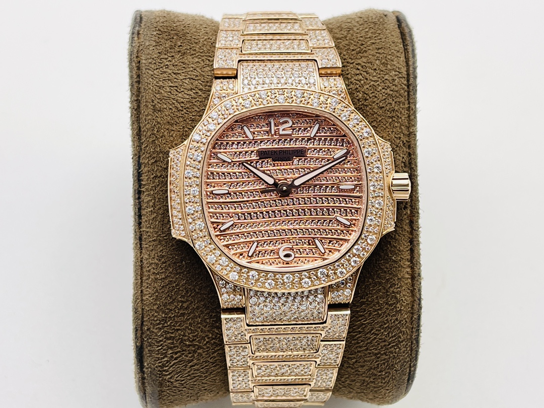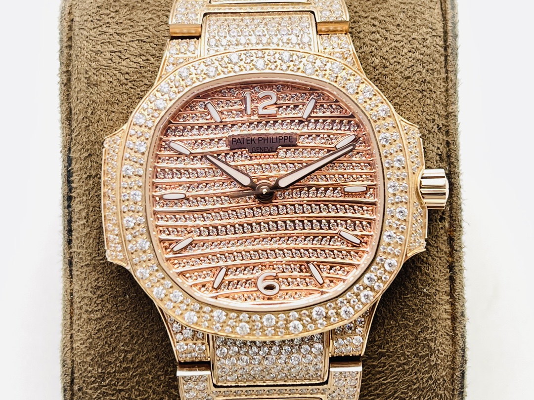 Patek Philippe Nautilus 7118/1450R Ladies Full Diamond Snow Setting Rose Gold Replica Watch