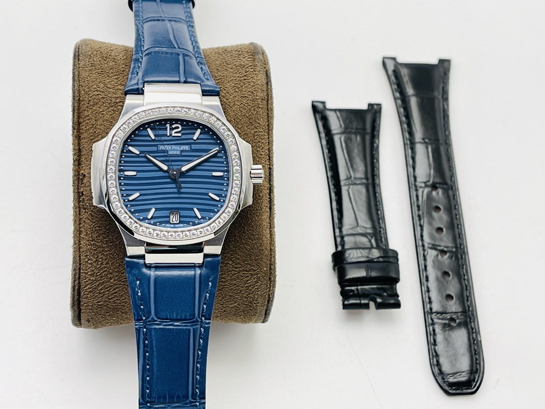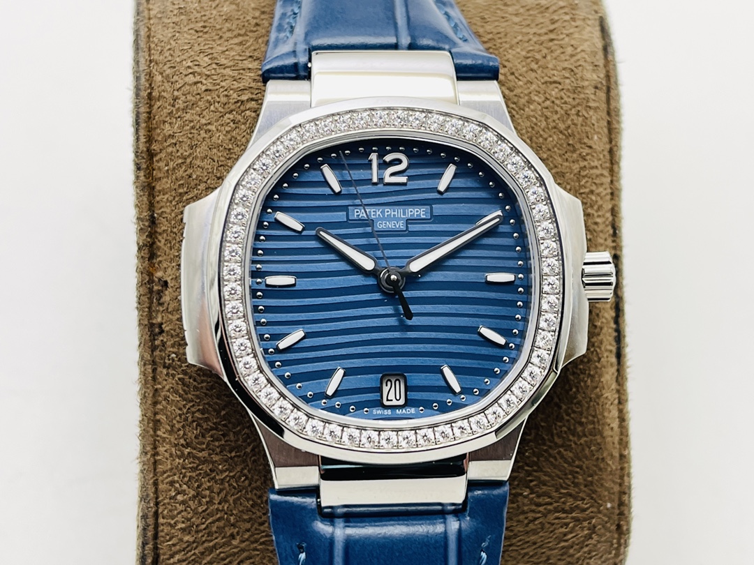 Patek Philippe Nautilus 7118 35,2MM Super Clone Schweizer Uhrwerk Blaues Zifferblatt Damen Replica Uhr