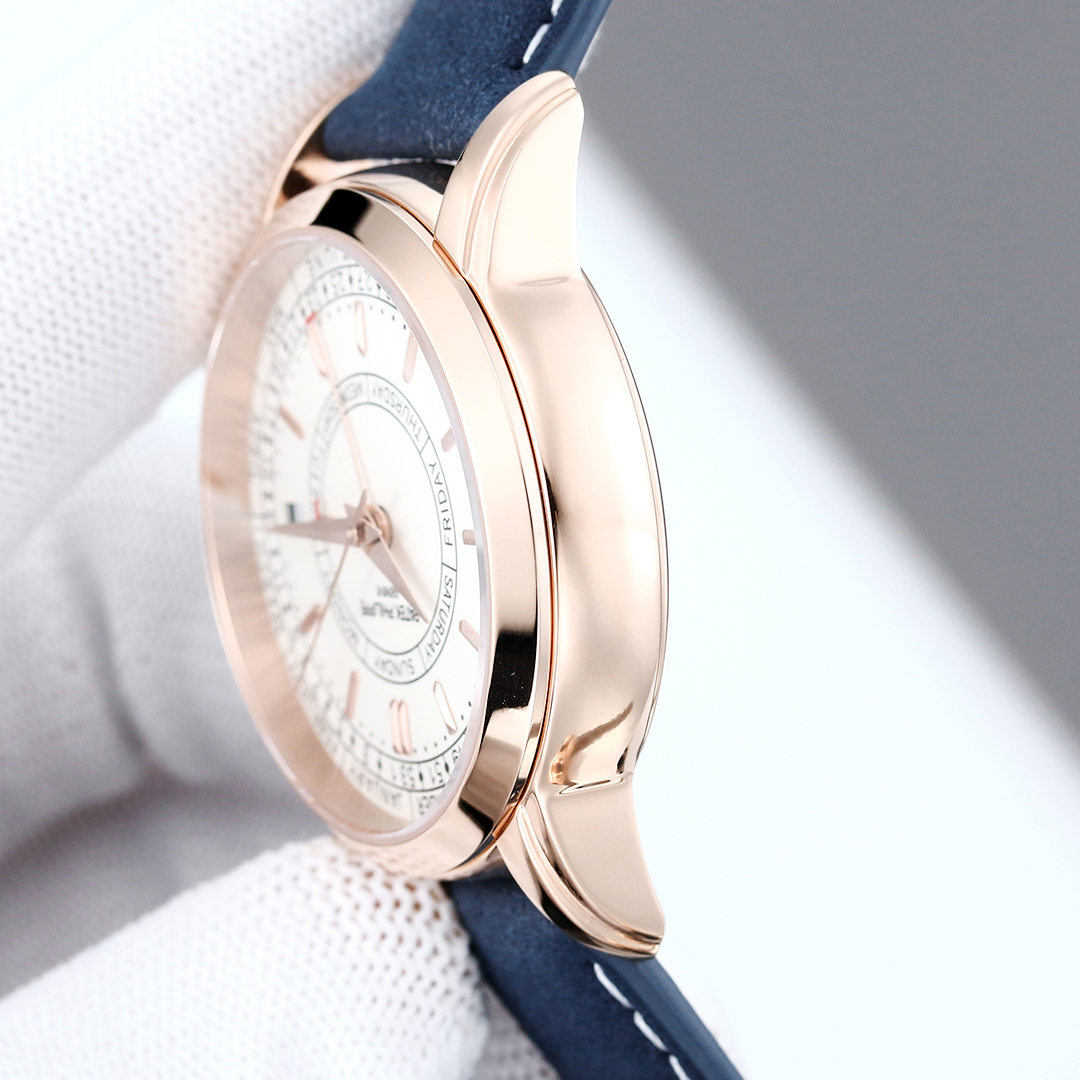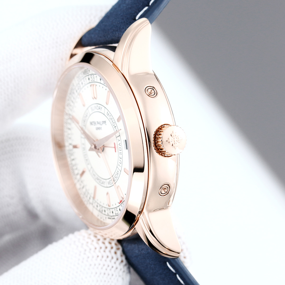 Patek Philippe Replica 5212A-001: edel, kompliziert und eine der besten Uhren in der gesamten Uhrmacherkunst. Das Modell 5212A ist in einem 40 mm großen, kupferfarbenen Gehäuse gekleidet. Zifferblatt und passende kupferfarbene Zeiger bieten einen exquisiten Kontrast, der das gesamte Design verstärkt. Im Herzen sorgt das Schweizer Uhrwerk für höchste Präzision, während das Saphirglas einen kristallklaren Blick auf das fein ausgearbeitete Zifferblatt ermöglicht. Kombiniert mit einem opulenten blauen Lederarmband strahlt es klassisches Design aus, das mit moderner Funktionalität verschmilzt. Mit einer Wasserdichtigkeit von bis zu 50 Metern ist es sowohl für den täglichen Gebrauch als auch für besondere Anlässe geeignet.