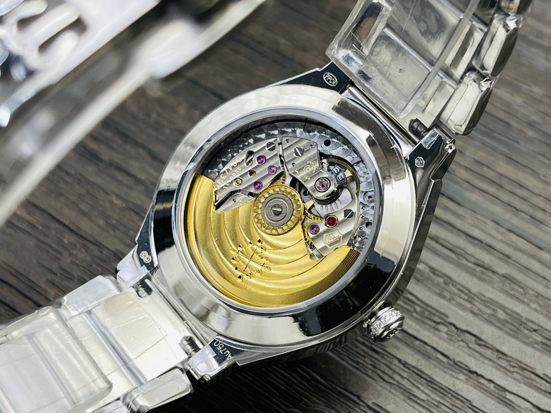 Dieses Armband aus Edelstahl ist vollständig mit 2.490 schnee-gesetzten Diamanten besetzt und nahtlos mit dem Gehäuse integriert, um einen anspruchsvollen, hochwertigen Look zu präsentieren. Die langlebige Konstruktion aus poliertem 316L-Edelstahl, das kratzfeste Saphirglas und die Wasserdichtigkeit bis 50 Meter arbeiten zusammen, um seine Robustheit und Tragbarkeit zu gewährleisten. Das Schweizer Automatikwerk steht für Leistung sowohl in Zuverlässigkeit als auch in Präzision.