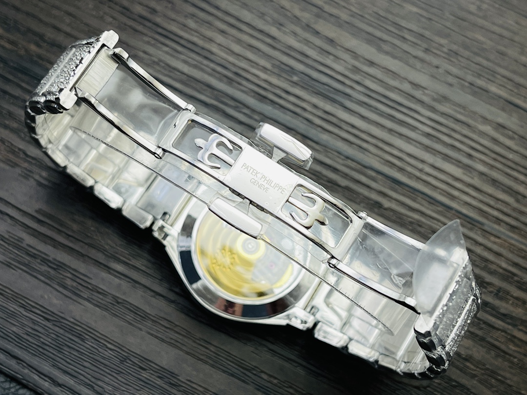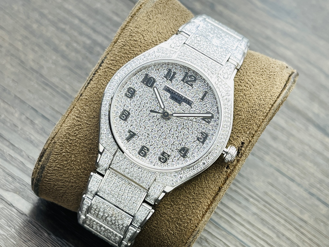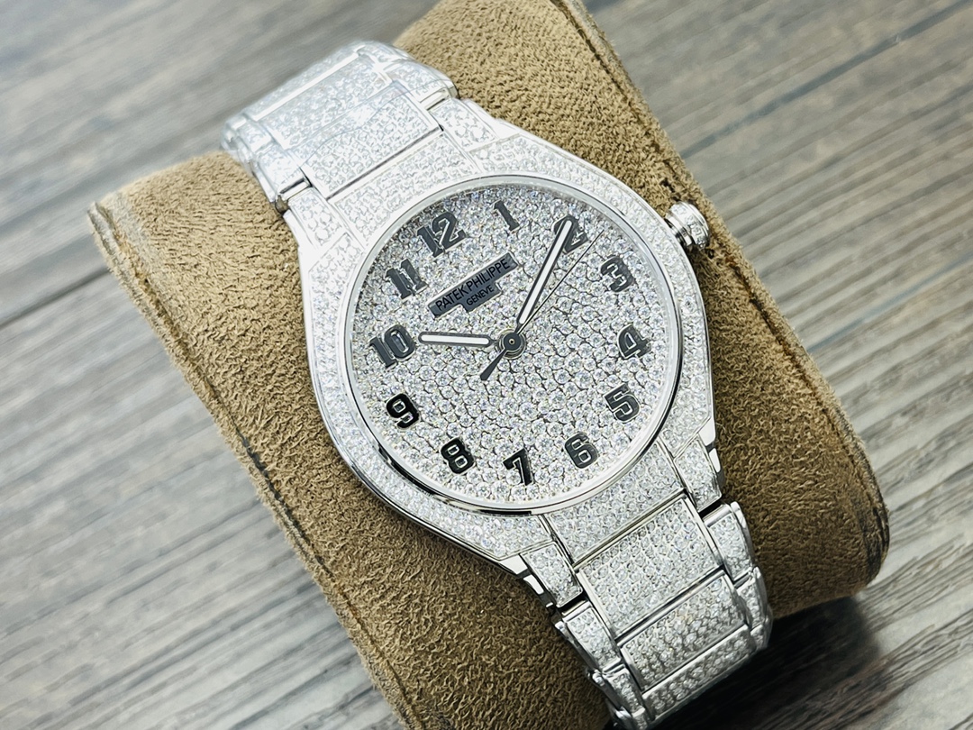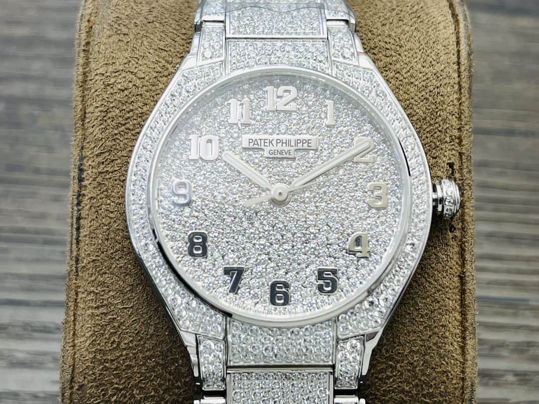 Gönnen Sie sich Luxus mit der besten Patek Philippe Twenty~4 7300 Super Clone, einer Schweizer automatischen Replik, die Eleganz und Brillanz verkörpert. Diese Kunstwerk wurde so gestaltet, dass es die originale Größe von 36MM nachahmt und verfügt über eine vollständige Diamant-Schneeflockenfassung, mit 351 sorgfältig gesetzten Diamanten auf dem Gehäuse und weiteren 384 Diamanten in einem Spitzeninlay auf dem Zifferblatt, was einen atemberaubenden, geschichteten Glanz erzeugt.