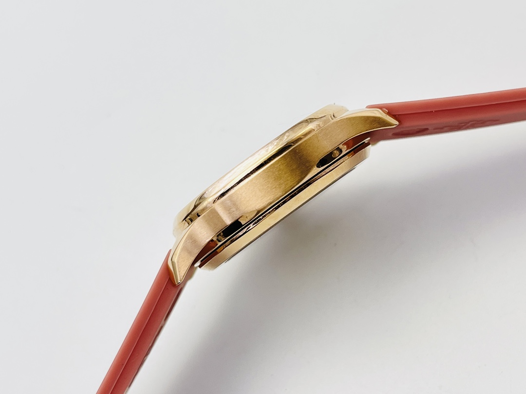 Die Lünette strahlt mit atemberaubenden Swarovski-Diamanten, die sofort ihre edle und feminine Eleganz unterstreichen. Das Zifferblatt zeigt das berühmte Granatenmuster zusammen mit geprägten arabischen Ziffern, die einzigartig geformt sind und einen dreidimensionalen Eindruck vermitteln. Das Zifferblatt präsentiert Eleganz und ein harmonisches Design, wenn es durch das kratzfeste Saphirglas betrachtet wird.