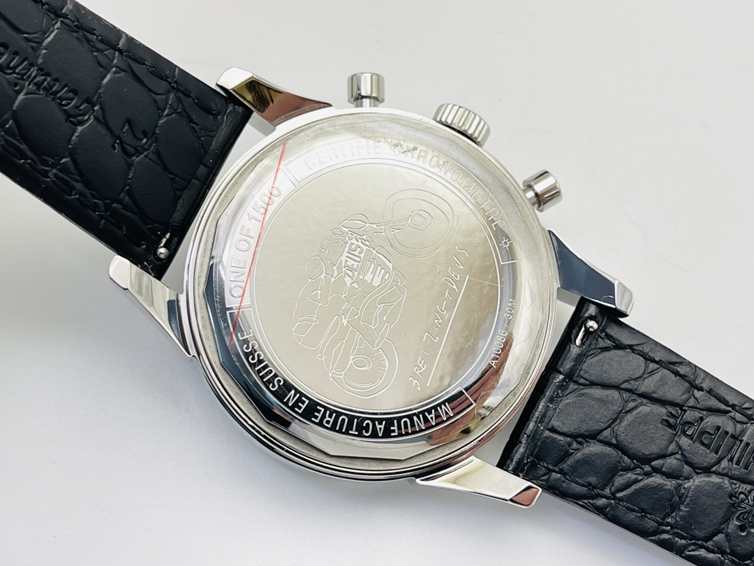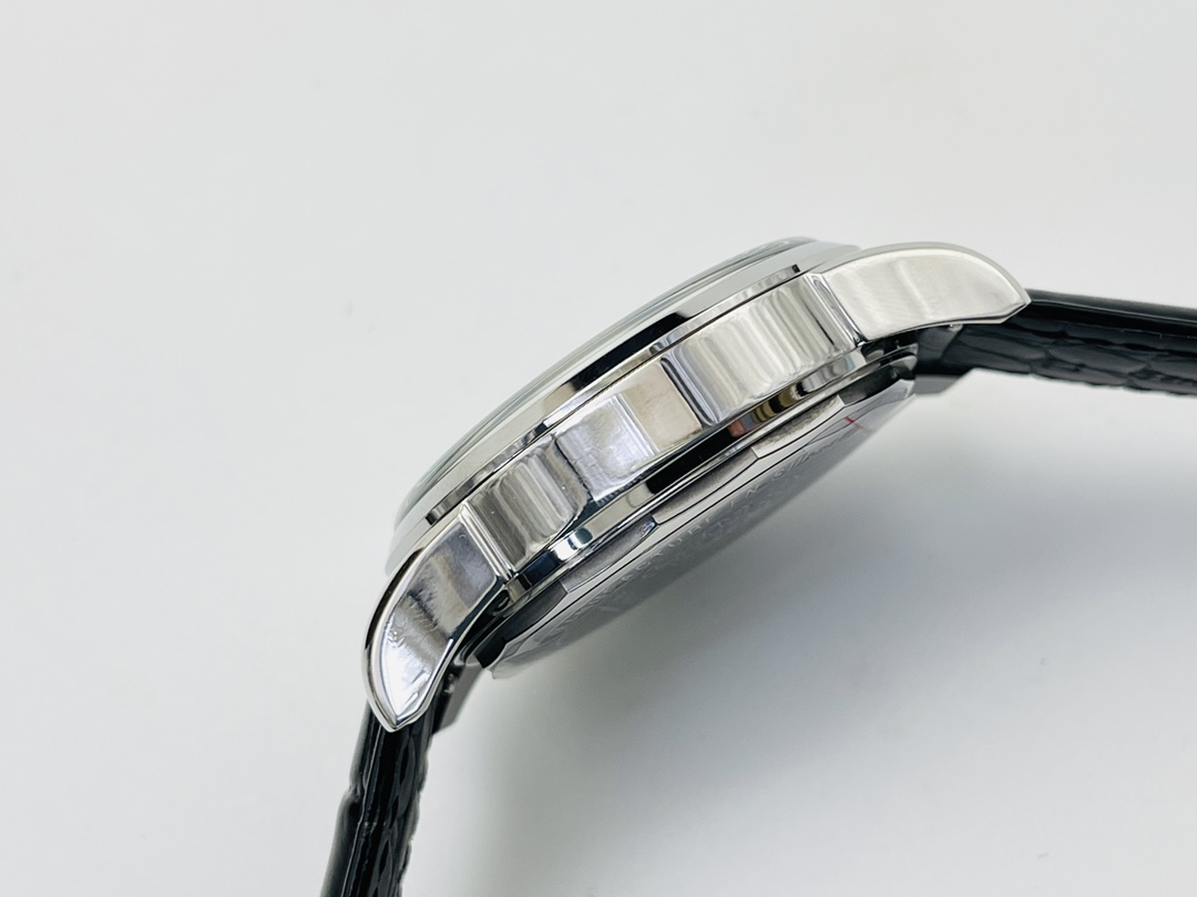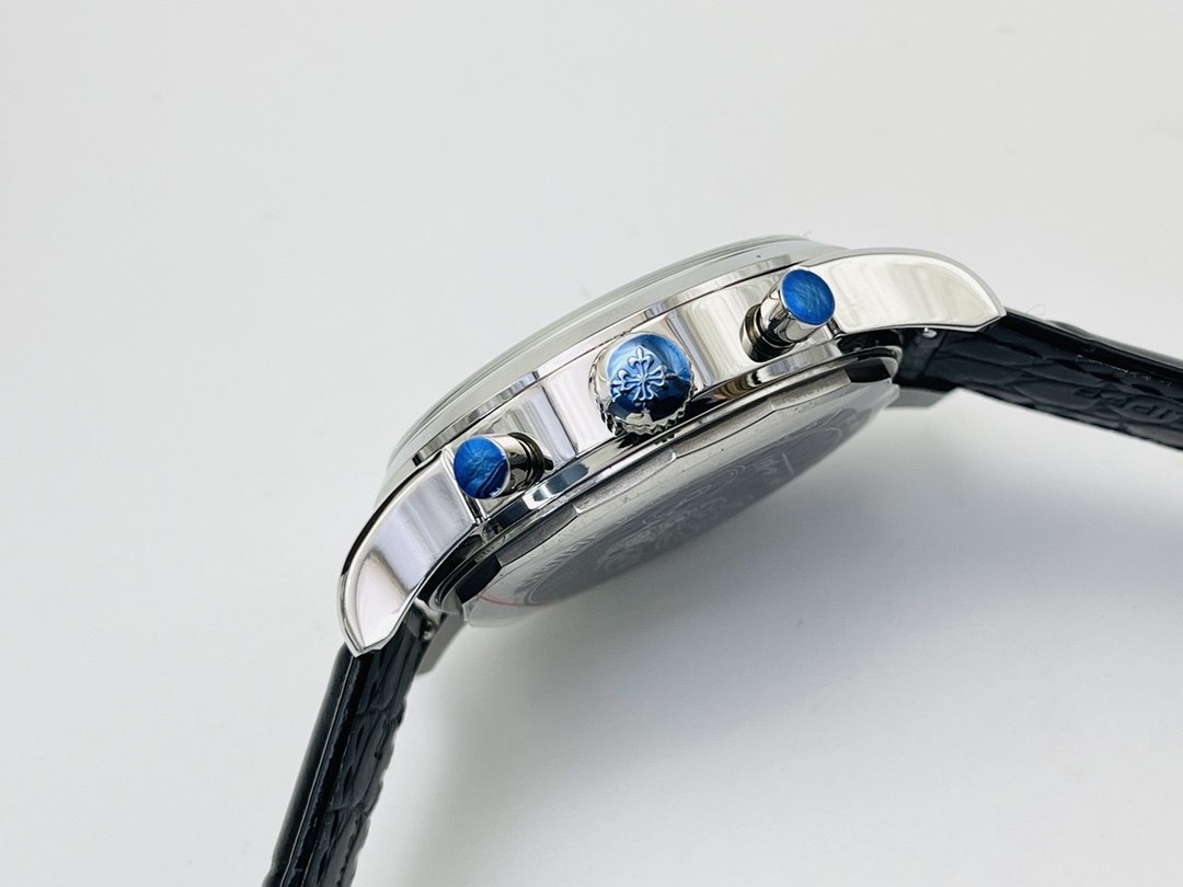 This watch comes in a 41mm case made from polished material with a 14mm thickness. It features a reliable Swiss movement, a Sapphire crystal for scratch resistance, and a high-end Italian calf leather strap for that genuine Patek Philippe Complications watch look at a more affordable price.