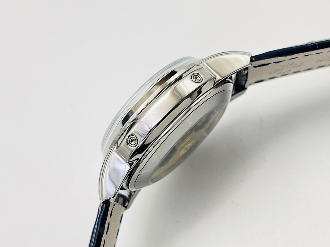 Diese Uhr ist mit einem blauen Lederarmband, einem kratzfesten Saphirglas und einem Schweizer Uhrwerk ausgestattet. Sie ist ebenso atemberaubend wie bis zu 30 Meter wasserdicht. Sie ist die perfekte Wahl für Liebhaber luxuriöser Uhren, die von ihren Zeitmessern nichts weniger als Perfektion erwarten.