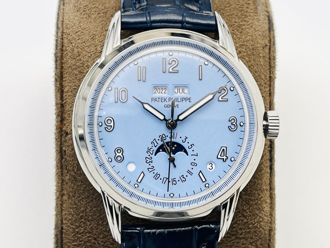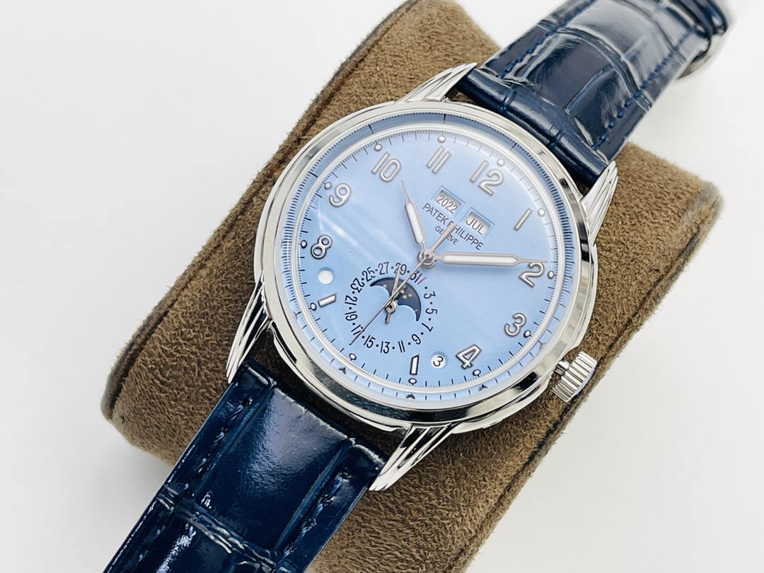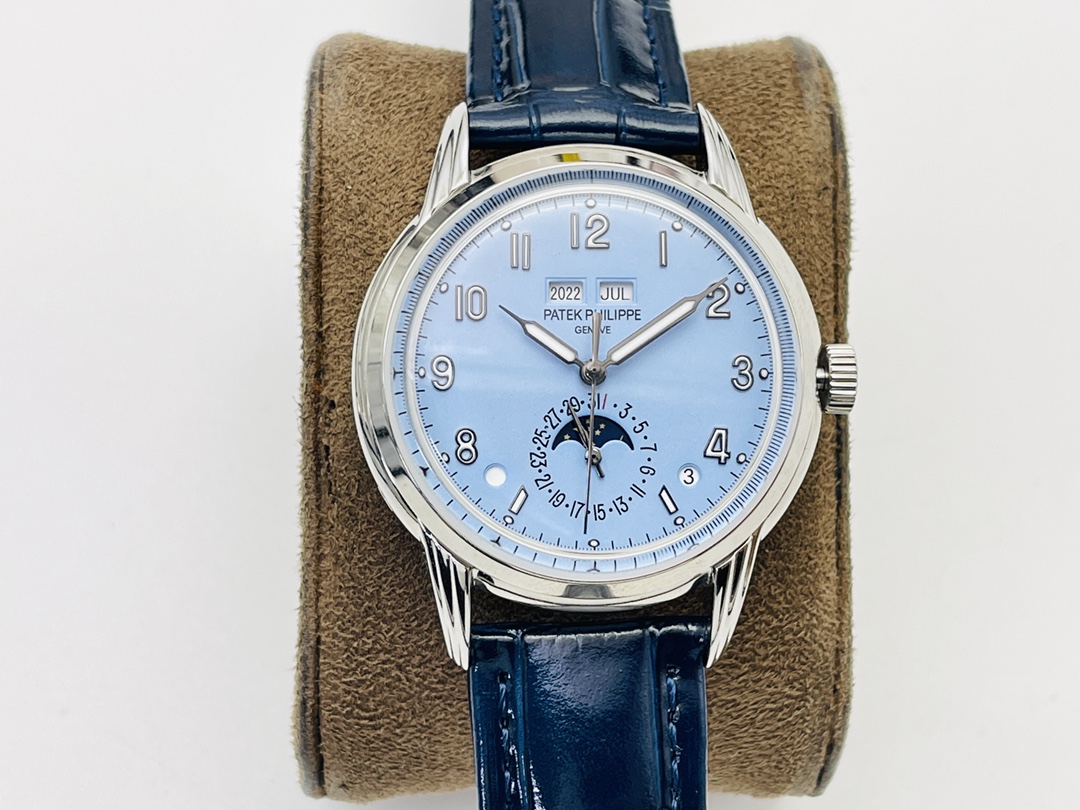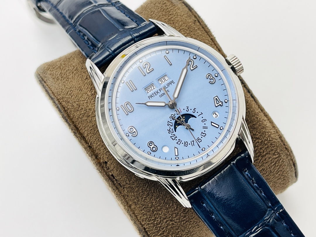 Schweizer Luxus Patek Philippe Grand Complications 5320G-001 Replica Ewiger Kalender Uhr mit blauem Zifferblatt und blauem Lederarmband