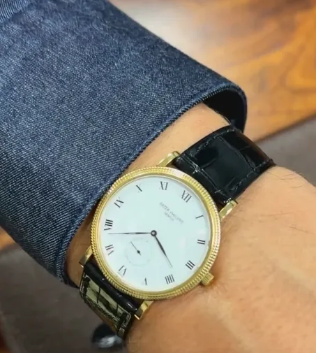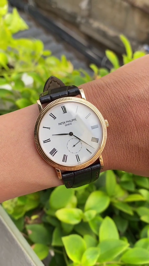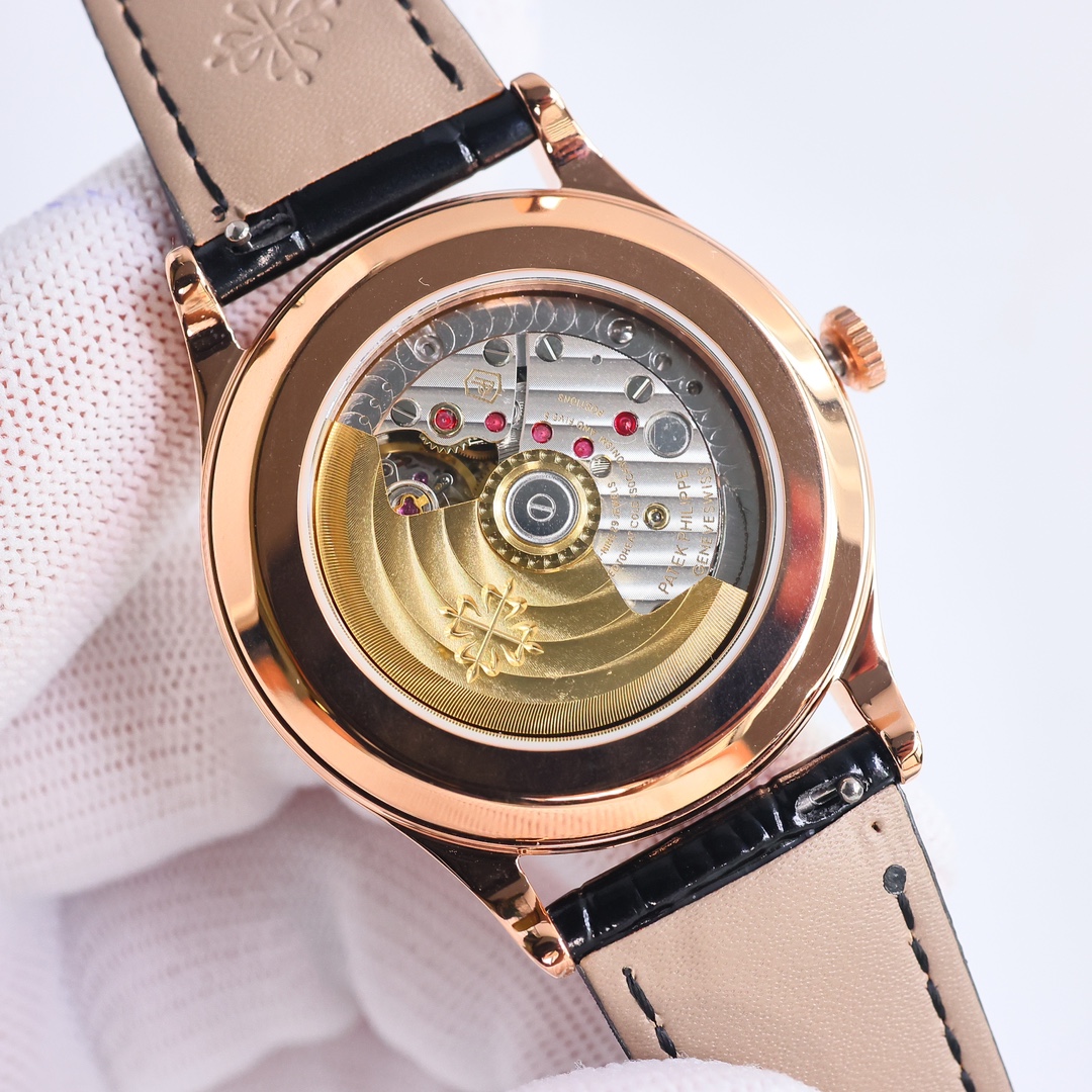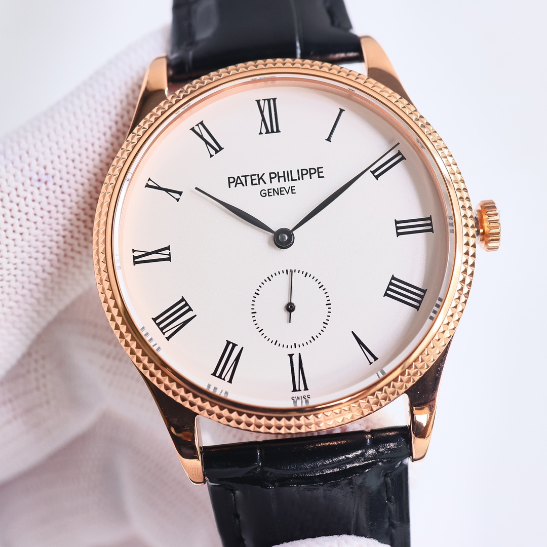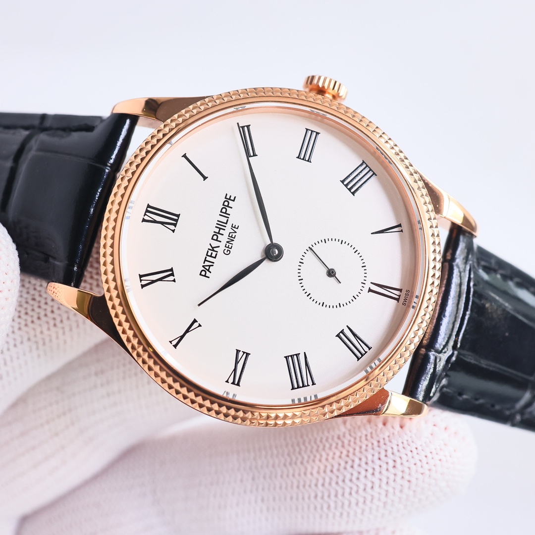 Fühlen Sie die Essenz ewiger Schönheit in der Patek Philippe Calatrava 5119R/001 Replica. Die minimalistische 36-mm-Uhr mit einem eleganten weißen Zifferblatt, das römische Ziffern als Stundenanzeiger trägt, eingebettet in ein hochwertiges Gehäuse aus 18-karätigem Gold. Ein Hauch von Eleganz kommt auch vom schwarzen Armband, das sowohl zu Abendgarderobe als auch zur Freizeitkleidung passt. Angetrieben von einem Schweizer Automatikwerk sorgt sie dafür, dass sie rund um die Uhr mit jedem Schlag arbeitet. Das kratzfeste Saphirglas und eine Wasserdichtigkeit von 50 Metern garantieren, dass sie ebenso robust wie modisch ist. Die Uhr ist die ideale Kombination aus Erbe und Eleganz.