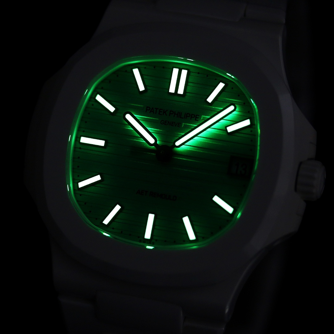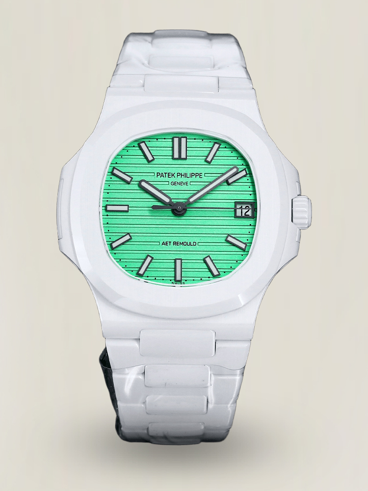 Schweizer Patek Philippe Nautilus 5711 Replica Weiß Keramik Uhr – Lefkada Blau Zifferblatt, Elegantes Design