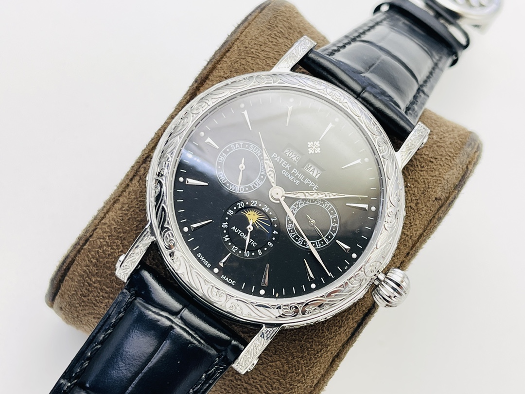 Schweizer Replica Patek Philippe Grand Complications Ewiger Kalender 42mm Herrenarmbanduhr – Elegantes schwarzes Zifferblatt
