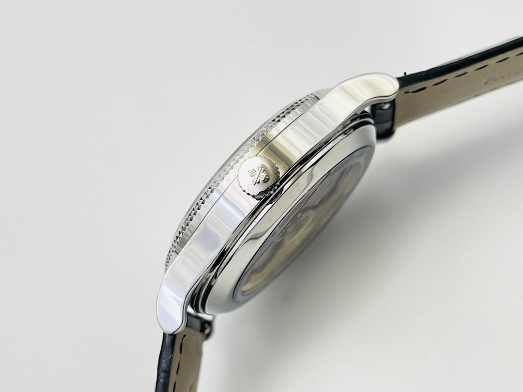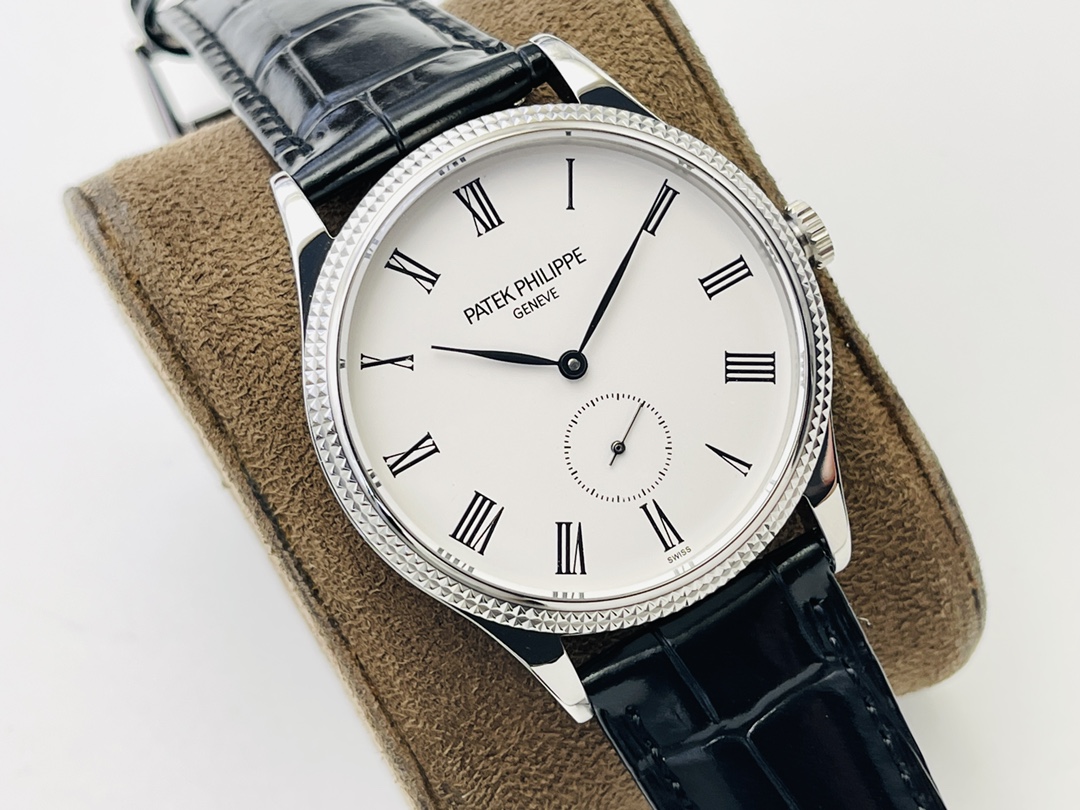 Vi tilbyr deg den beste Patek Philippe 3919 Calatrava-replikatet, en sveitsiskprodusert superklone som fullt ut reflekterer originalens eleganse og presisjon. Den AAAAA luksusklokken kommer i et 39 mm hvitt gullhus, som gir lett og komfortabel bruk med de samme målene som originalversjonen.