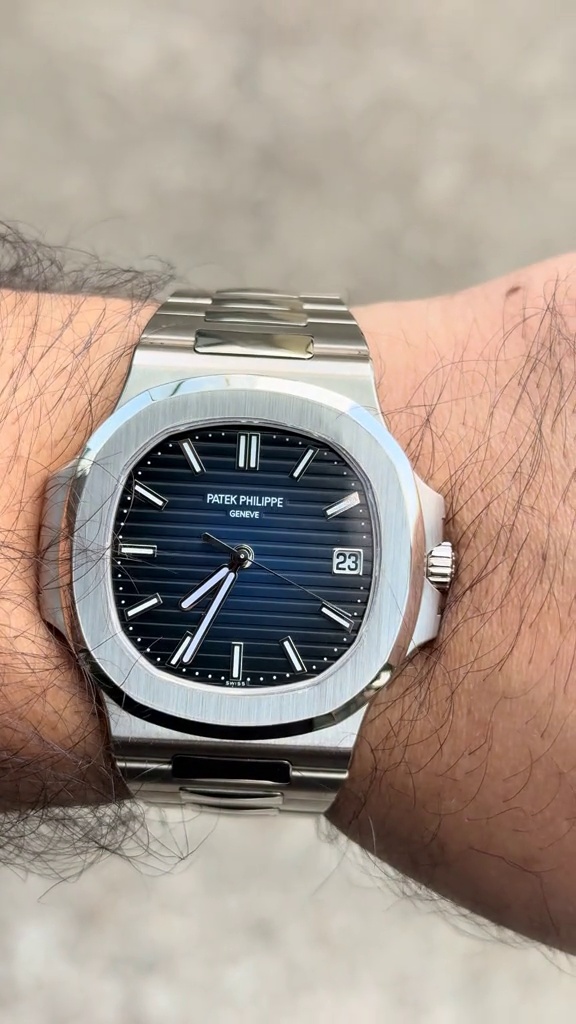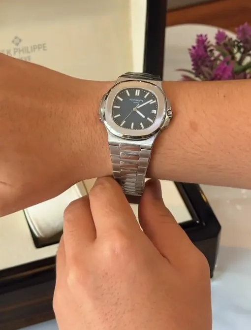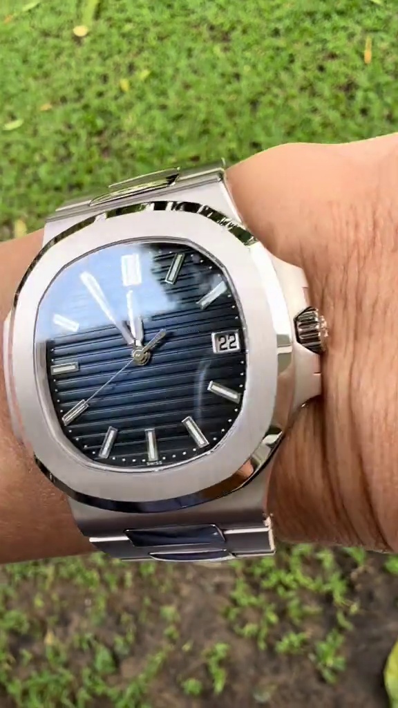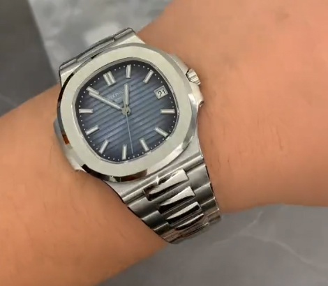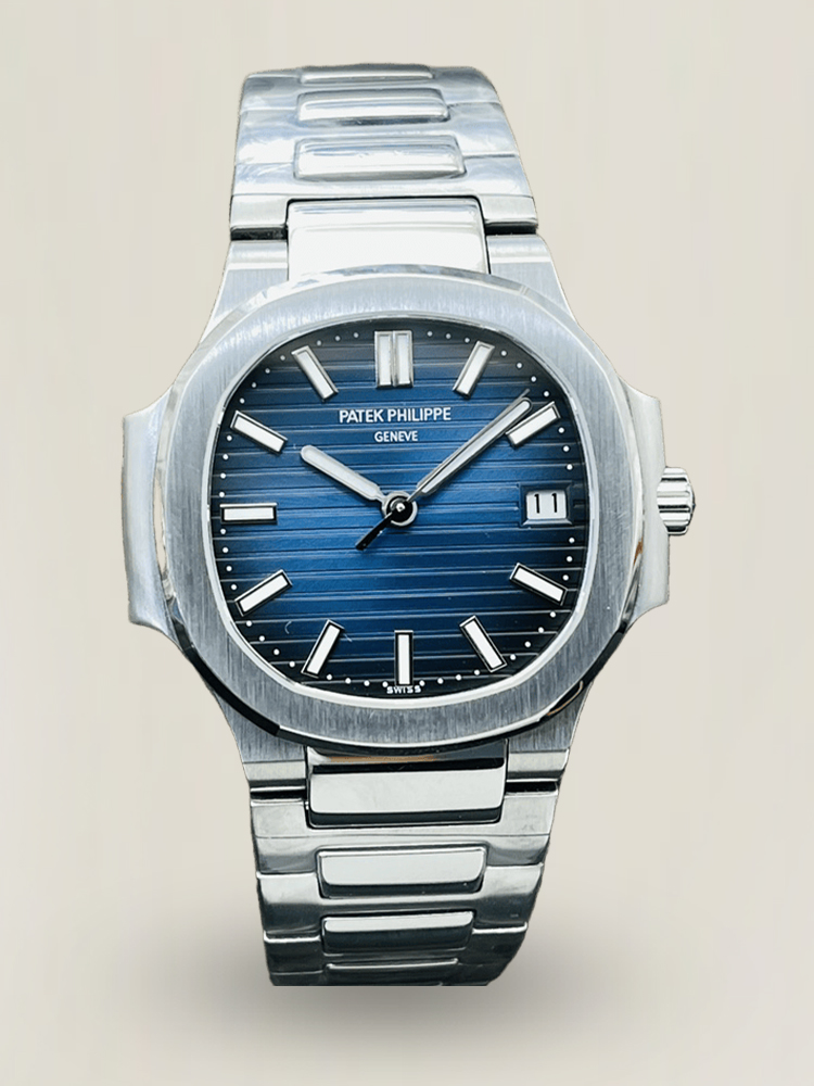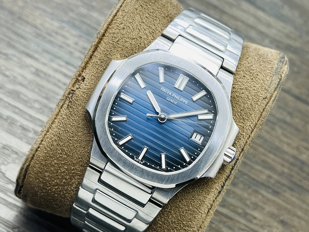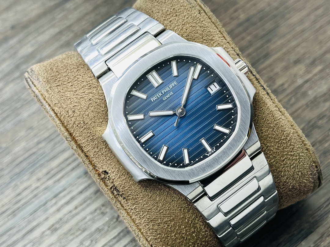 The Patek Philippe Nautilus 5811/1G-001 replica ladies watch combines elegance and precision flawlessly. Made in stainless steel case of 41mm, the watch is lavish in its legendary blue dial. It transitions smoothly into black gradient near the periphery. The dial is counter-balanced with horizontally embossed stripes, adding a distinct texture and strong visual appeal. A white and practical date window with black gears indicates gears at 3 o'clock and provides functionality without losing style. The use of 3D hour markers incorporated adds depth and legibility to the watch dial.