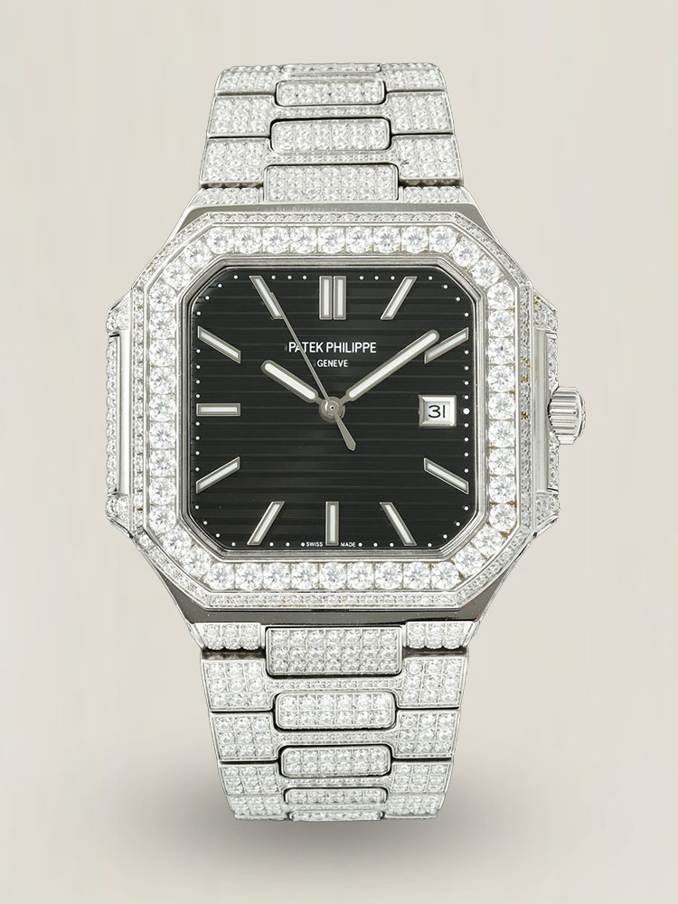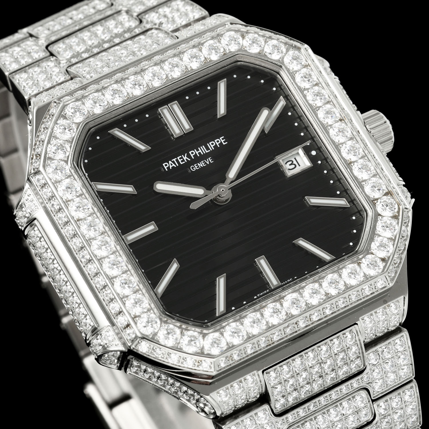 Experience classic, timeless elegance with the Best Swiss AAA Replica Patek Philippe Cubitus 5821/1A-001. This 45mm masterwork is clothed in a luxurious full-diamond case and features a sleek, ergonomic 316L stainless steel bracelet. Its classic yet contemporary dial design blends perfectly with both sophistication and modernity, making it an ideal timepiece for both formal and casual events. Powered by a premium Swiss movement, this sports-style watch offers impeccable accuracy and performance. The sapphire crystal glass gives more strength and clarity, while the water resistance to 50 meters assures reliability in daily use. Top off your style with this amazing combination of luxury and craftsmanship.