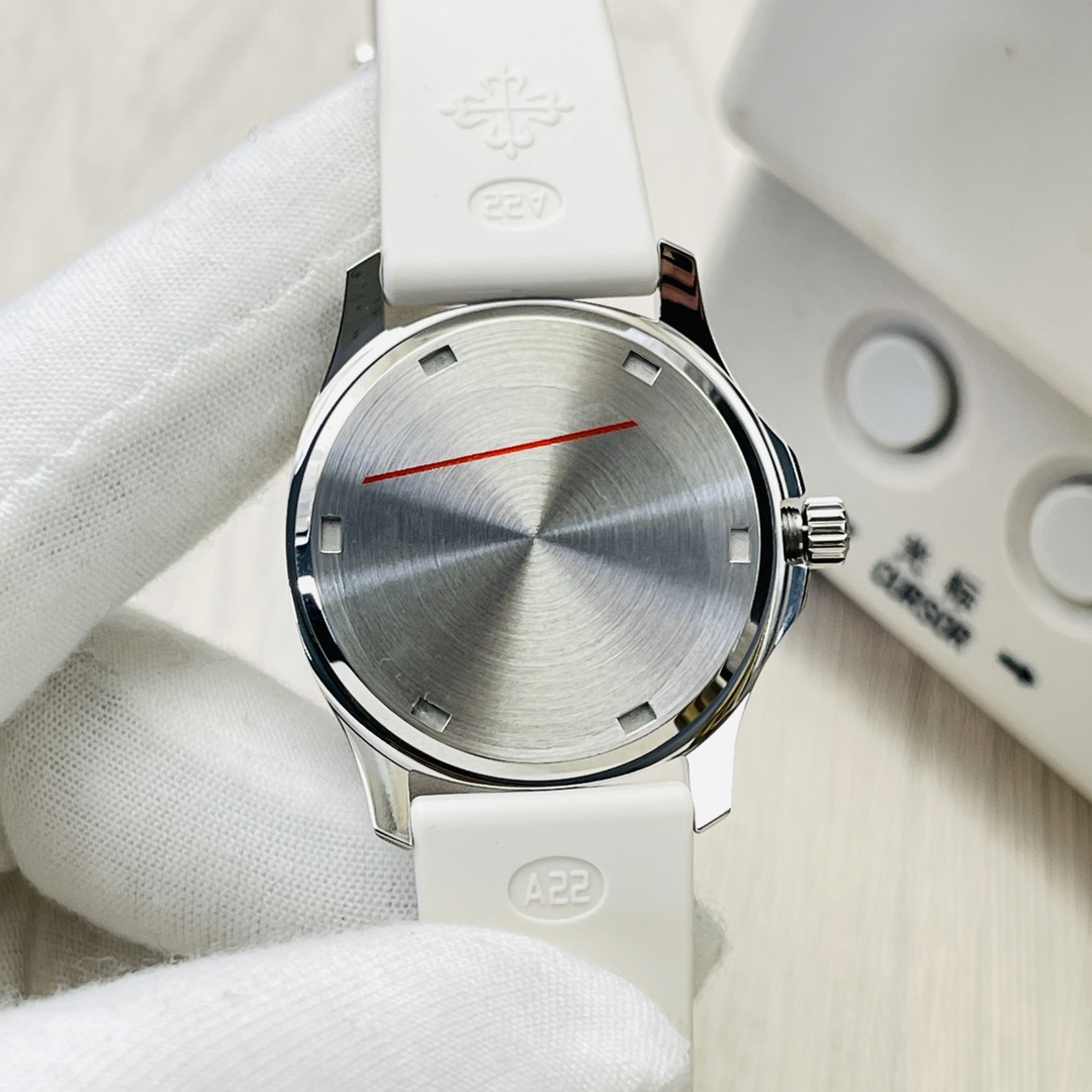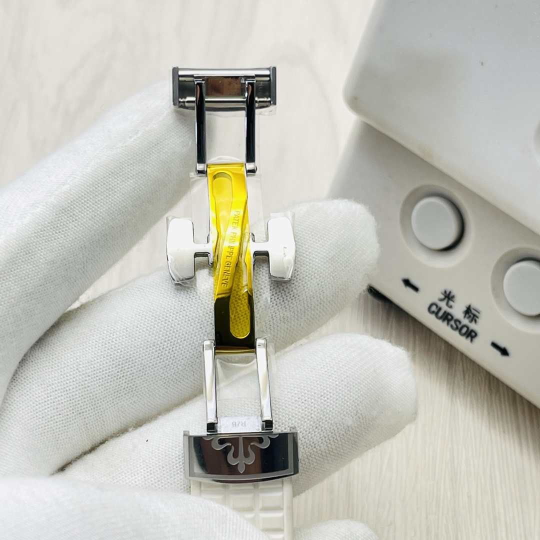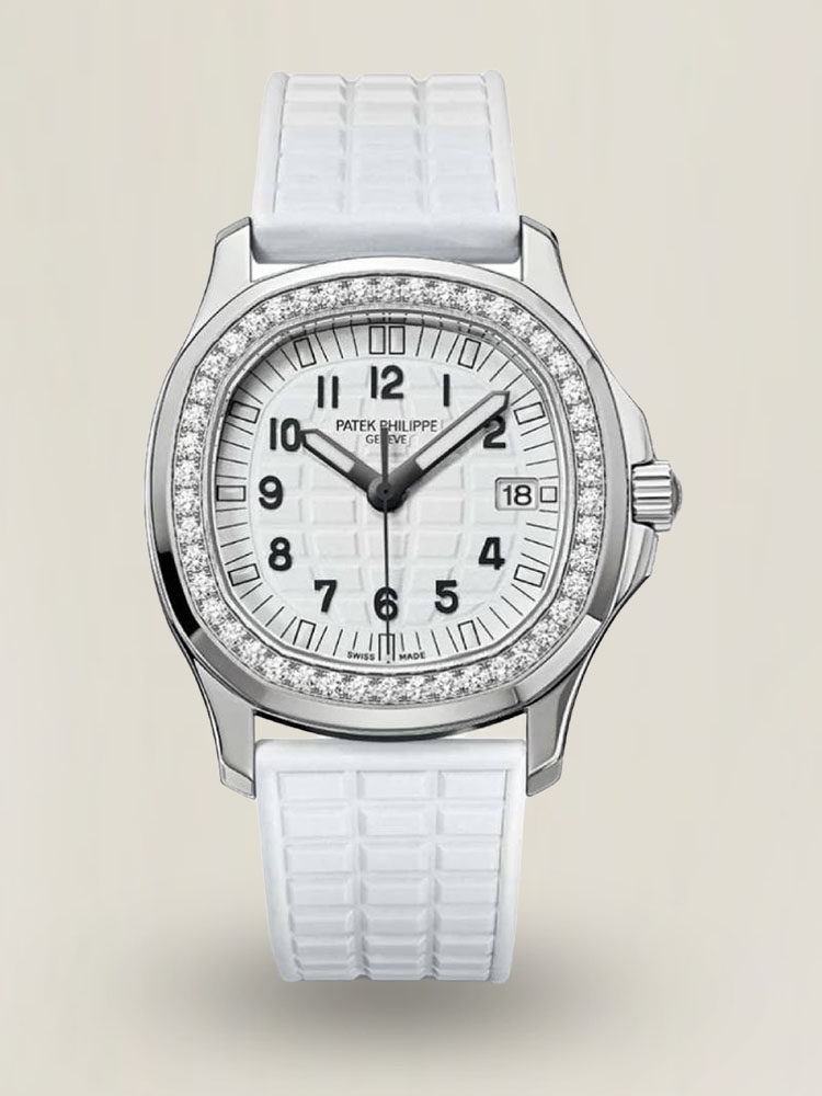 | Dial Color | Matte Pearly White Dial with Aquanaut Pattern and Black Gilded Numerals |