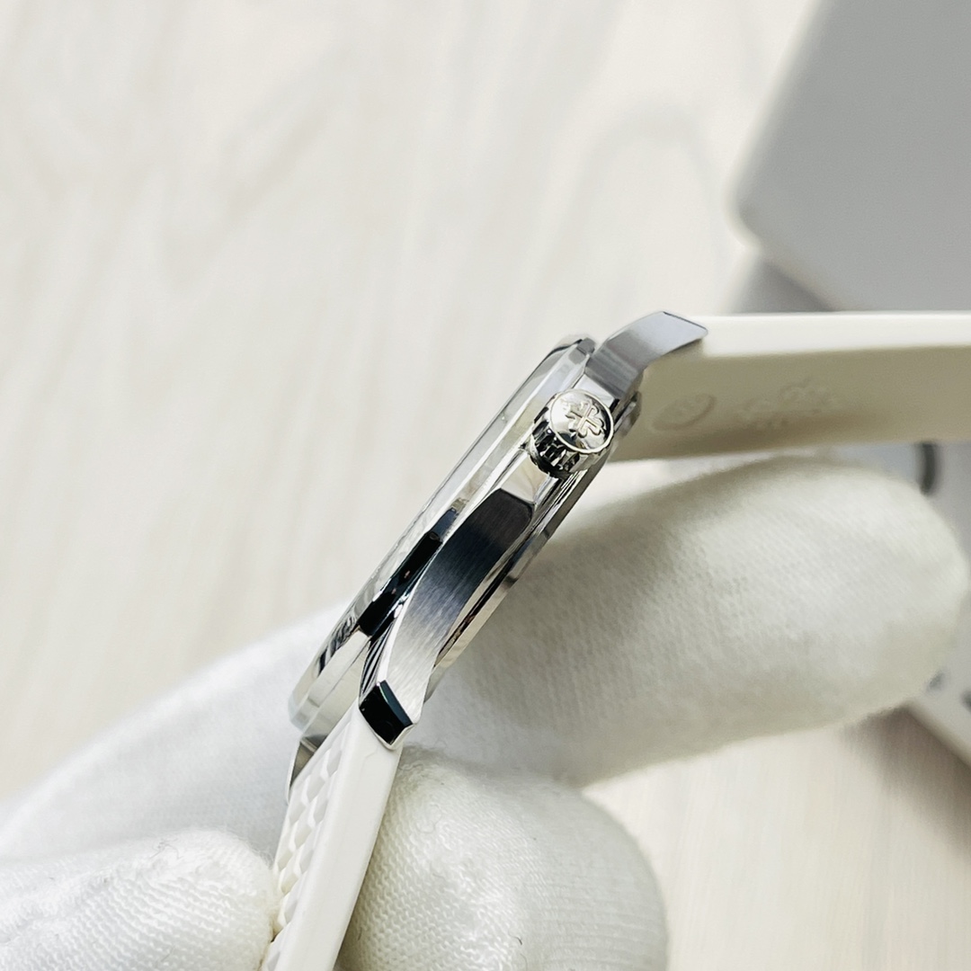 The strap is made from the same style Tropical composite rubber used on the genuine model, designed to resist seawater, sweat, and UV exposure, making it a perfect everyday choice. Inside, the watch runs on a reliable Swiss quartz movement, protected by a clear sapphire crystal, and features 50 meters water resistance for daily confidence. Overall, this is an ideal Aquanaut Luce for women who want a luxury look with comfort, practicality, and low maintenance.
