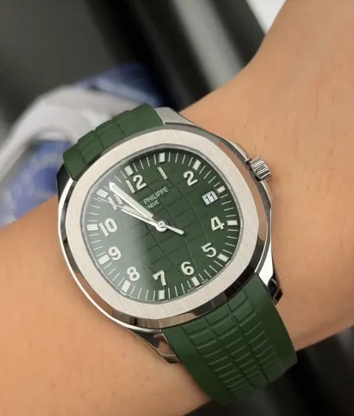 Experience luxurious sportiness with this stunning Patek Philippe Aquanaut 5168G-010 replica. The watch is inspired by the gentleman of today. It comes in a case made of sturdy 316L stainless steel with a diameter of 42.2mm. It is as strong as it is refined. The unique khaki green face boasts a time-honored embossed checkered design, heavy Arabic numeral hour markers. And the luminous-coated hands—guaranteeing effortless readability at all times.