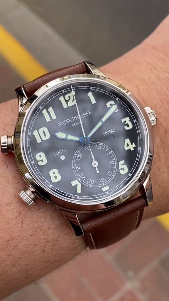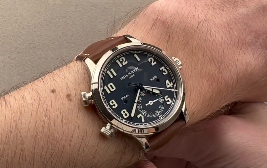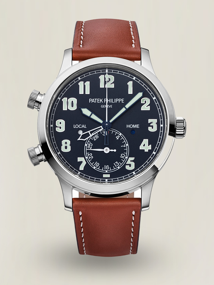 If you prefer timepieces that simply don't have to call attention to themselves but simply do their job, your watch is the Replica Patek Philippe Complications 5524G-001. Borrowing from the vintage flight style, it has a dark blue dial with matte relief finish and expansive, glowing Arabic numerals, which are perfectly legible either in the bright light of day or in the cover of darkness.