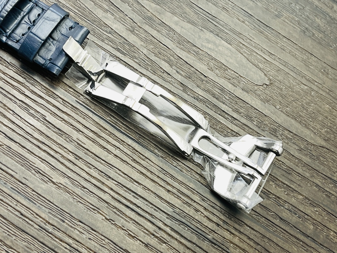 The dial is exquisitely made and has several complications. The left side of the dial has a year indicator and the right side has a month indicator. The day indicator is at 9 o'clock. And the month indicator is at 3 o'clock. The 24-hour and moon phases are at 6 o'clock. It features sapphire glass and a water-resistant mechanism to 50 meters. So it's practical and stunning.