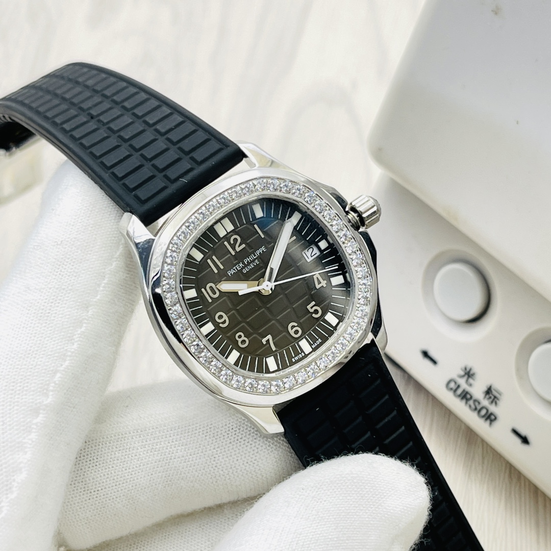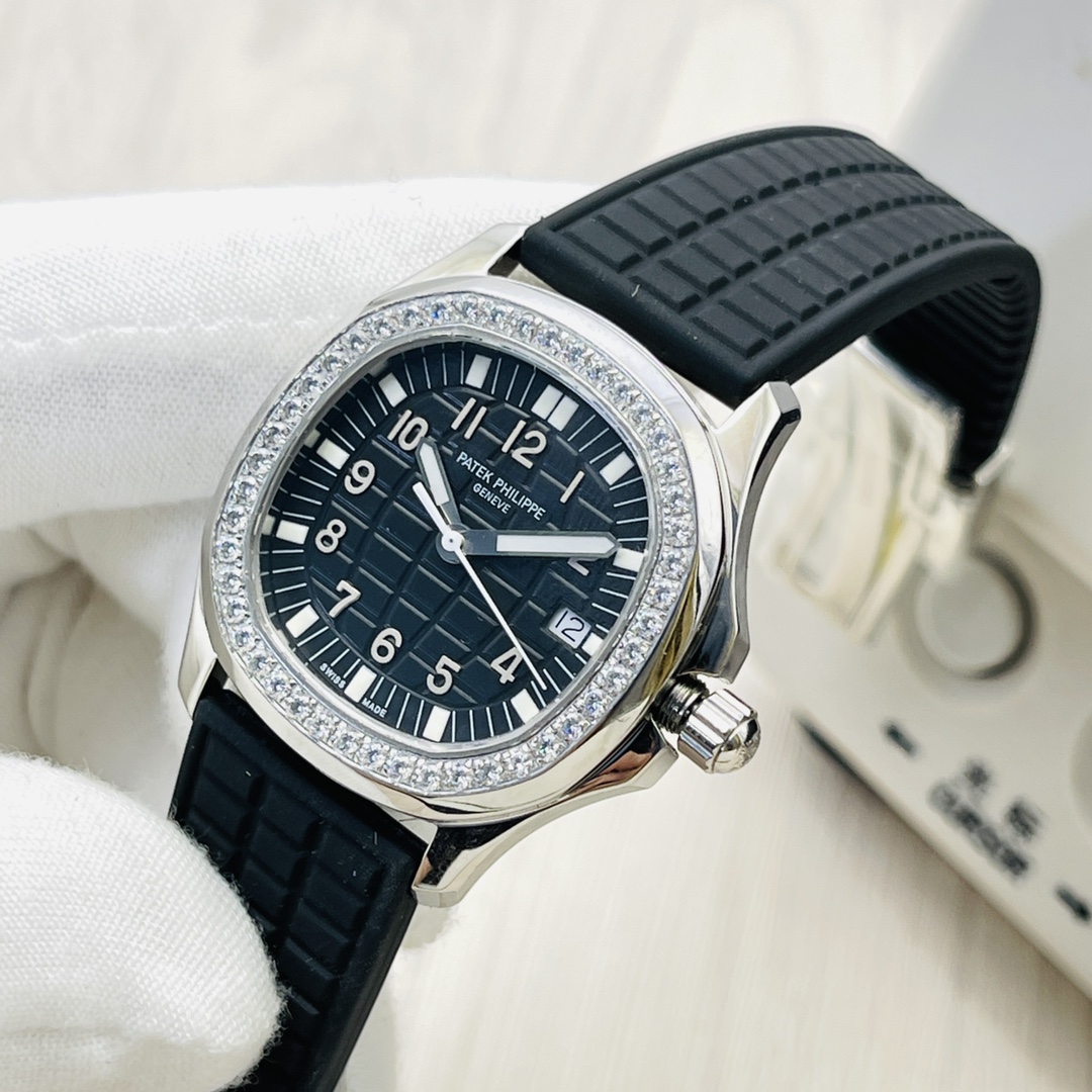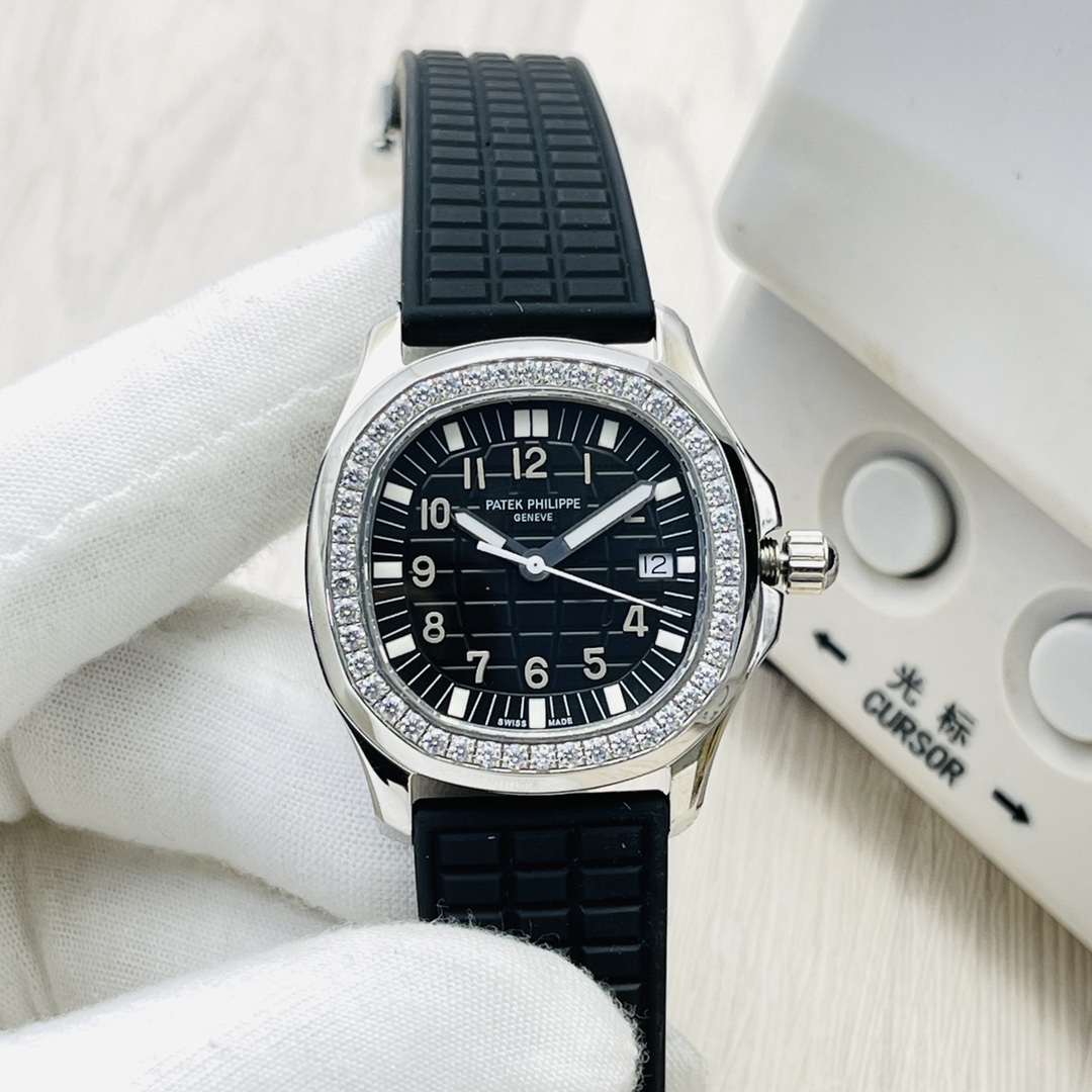 Swiss Ladies Patek Philippe Aquanaut 5067A-001 Replica Watch With Diamond Bezel And Black Rubber Strap