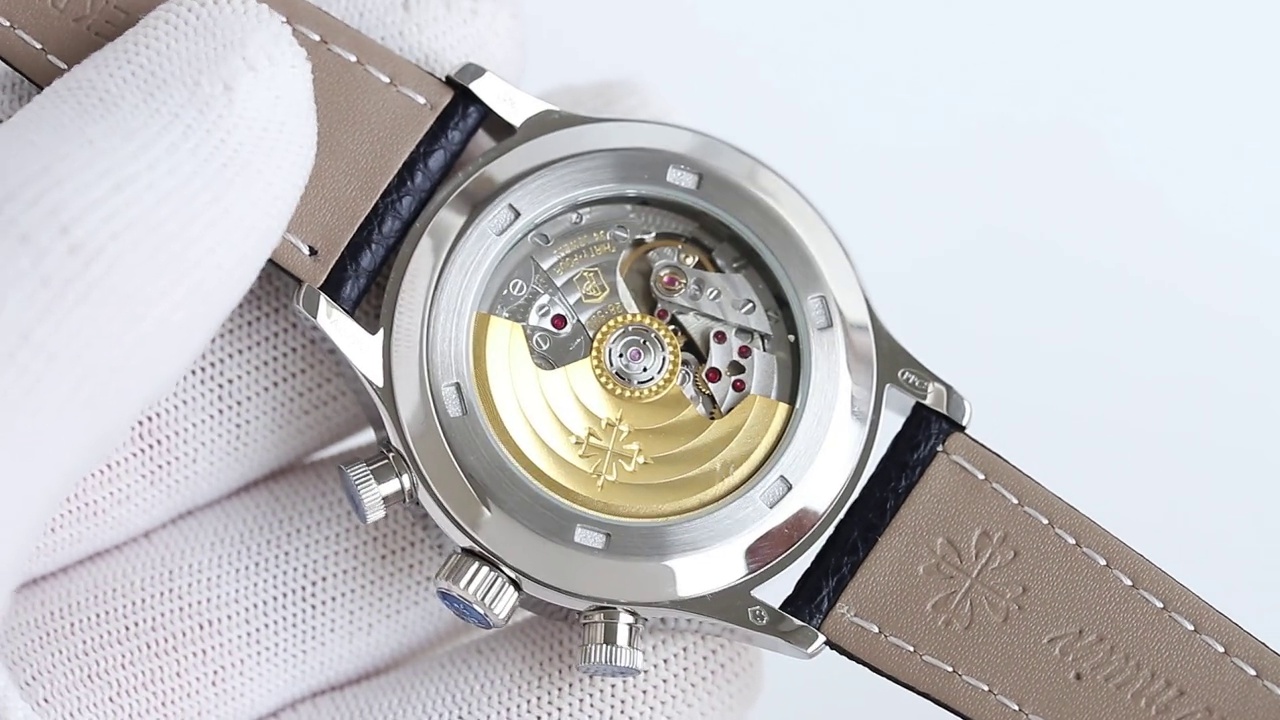 Uncover sophisticated sophistication in the Patek Philippe Complications 5924G replica watch. The watch is a luxury watch designed for the serious watch enthusiast. The spectacular blue-gray dial features huge 3D Arabic numerals and sword-shaped hands with luminous material at the tip to provide superb legibility in dim lighting conditions. Two subdials add aesthetic beauty, giving form and function.
