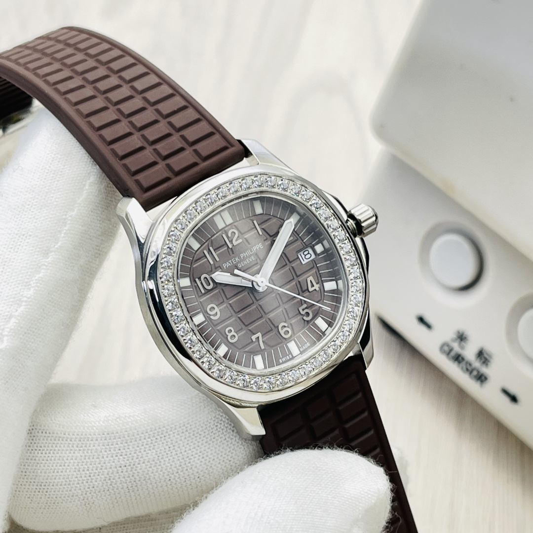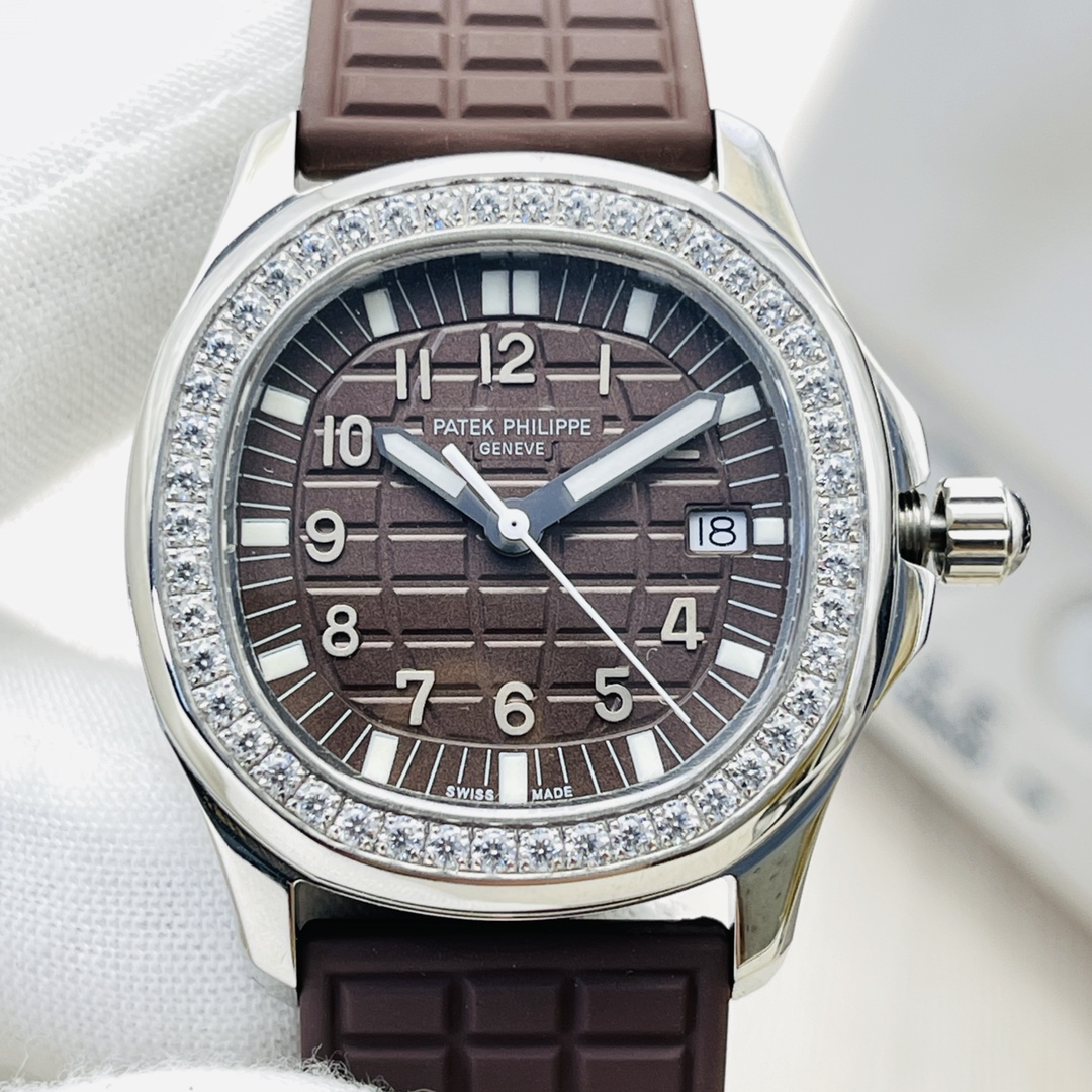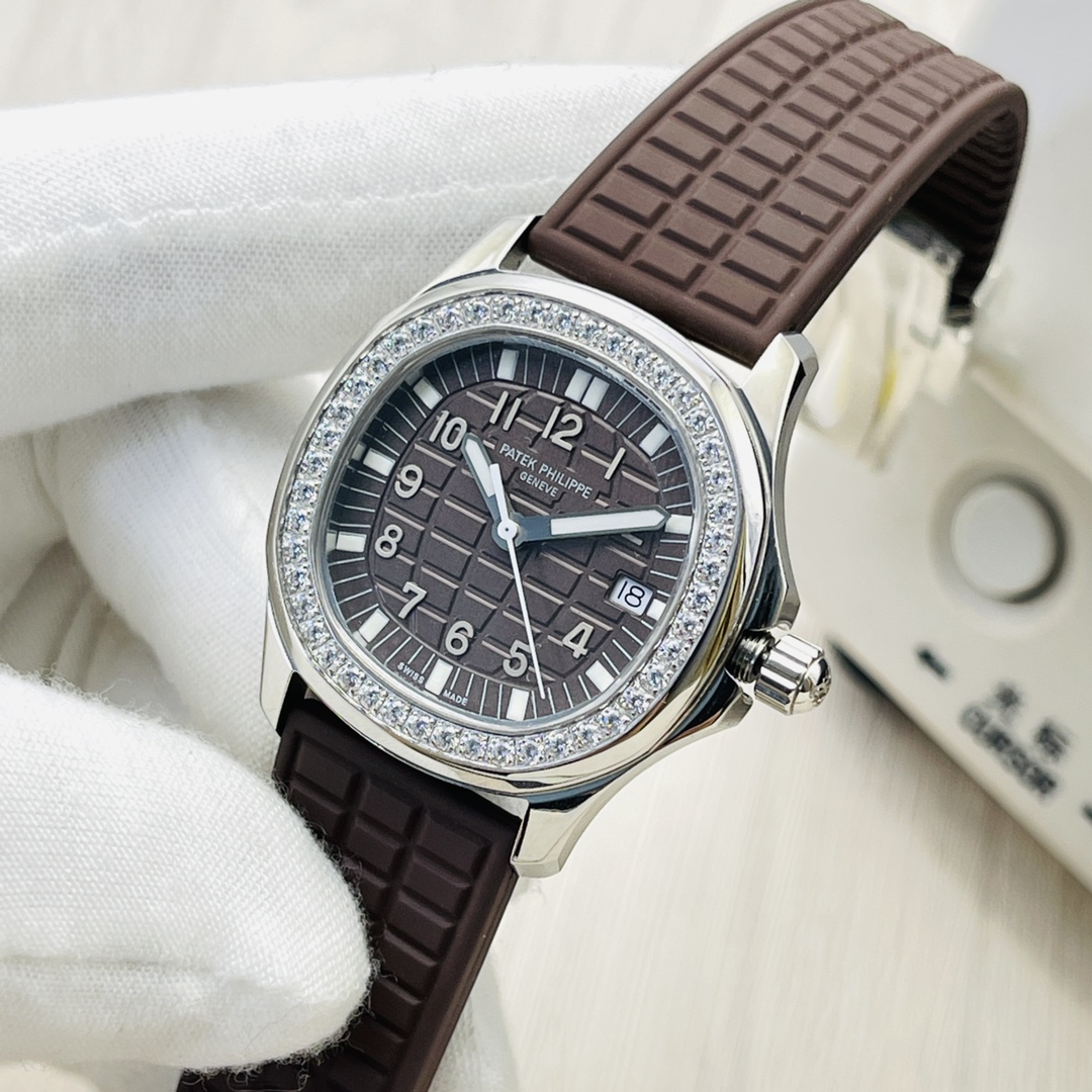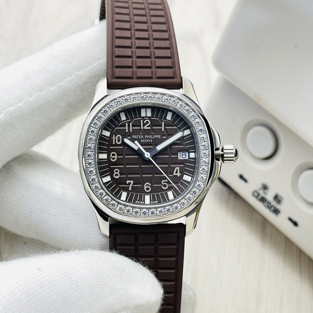 Swiss Replica Patek Philippe Aquanaut 5067A Ladies 35.6mm Watch - Brown Dial & Rubber Strap