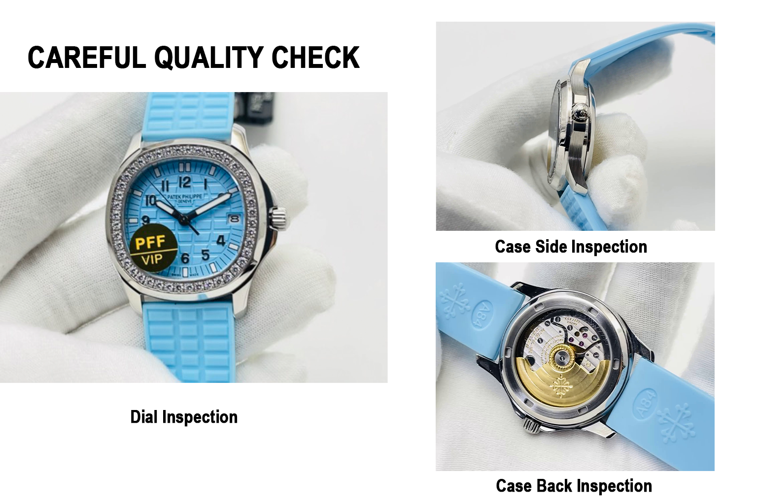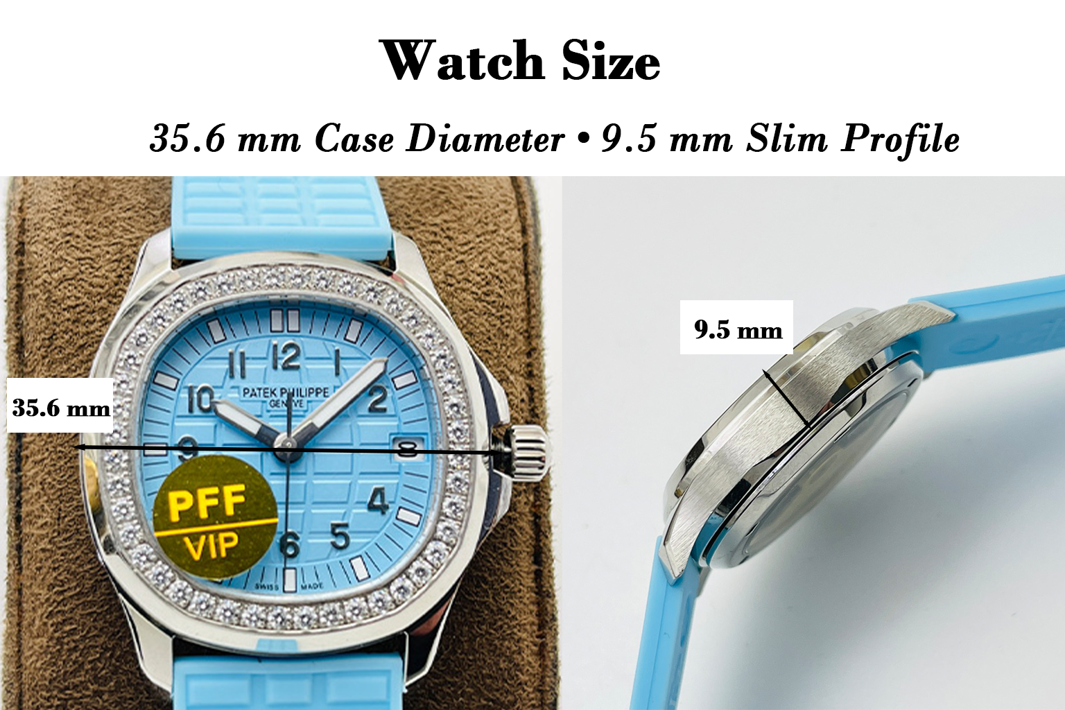 | Dial Color | Light Ice Blue with Checkerboard Embossed Pattern |